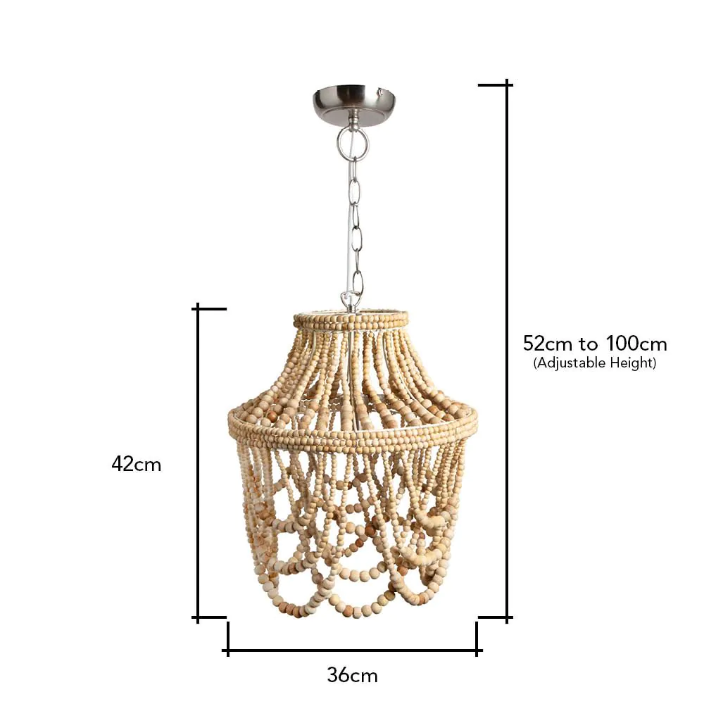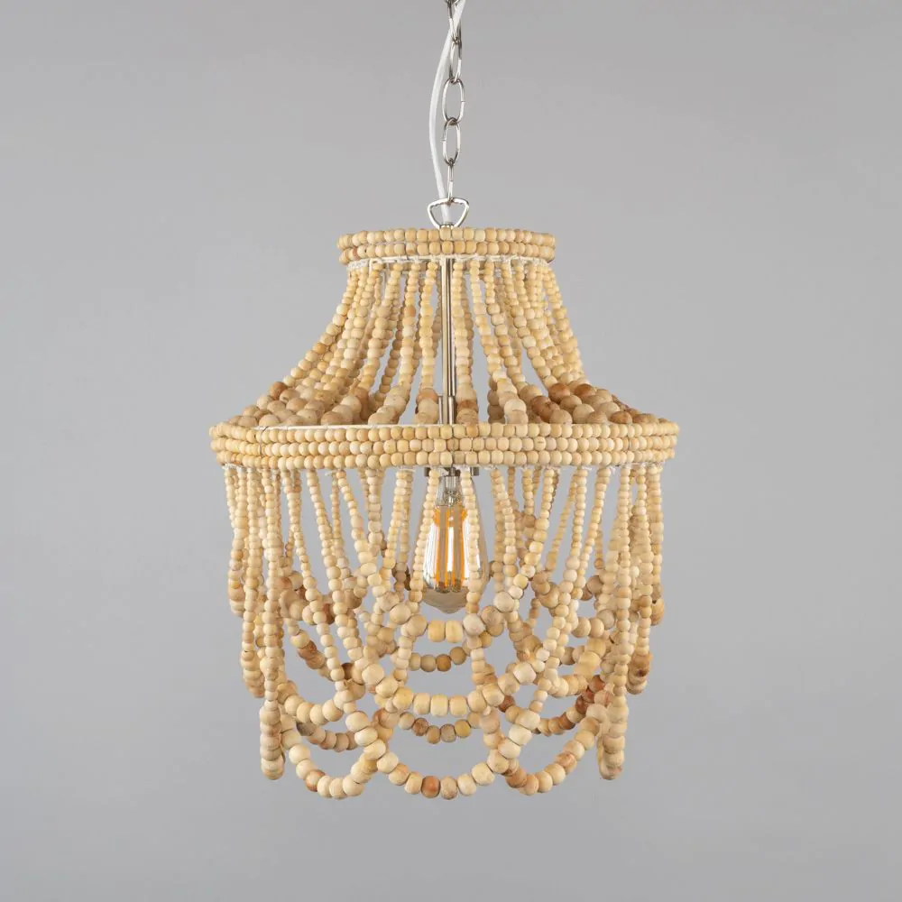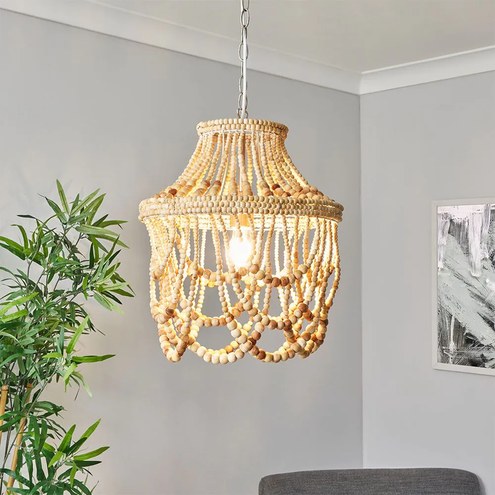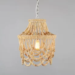 Add a rustic accent to any room with the Jenny Beaded Ceiling Pendant. The beaded style of this ceiling light shade brings a bohemian feel to your home. The wood finish brings a natural look to this vintage ceiling light shade.