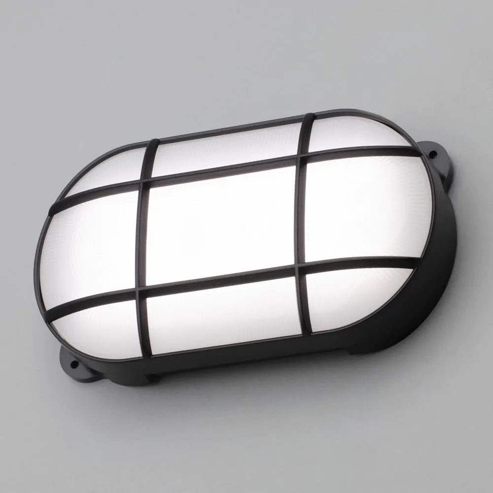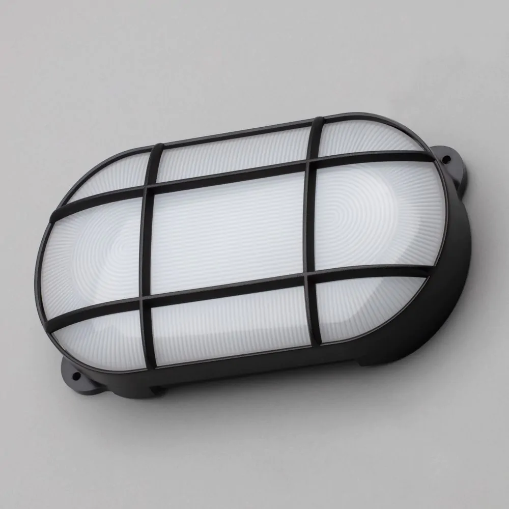 Jon 8 Watt LED Oval Grid Outdoor Bulkhead Light, Black