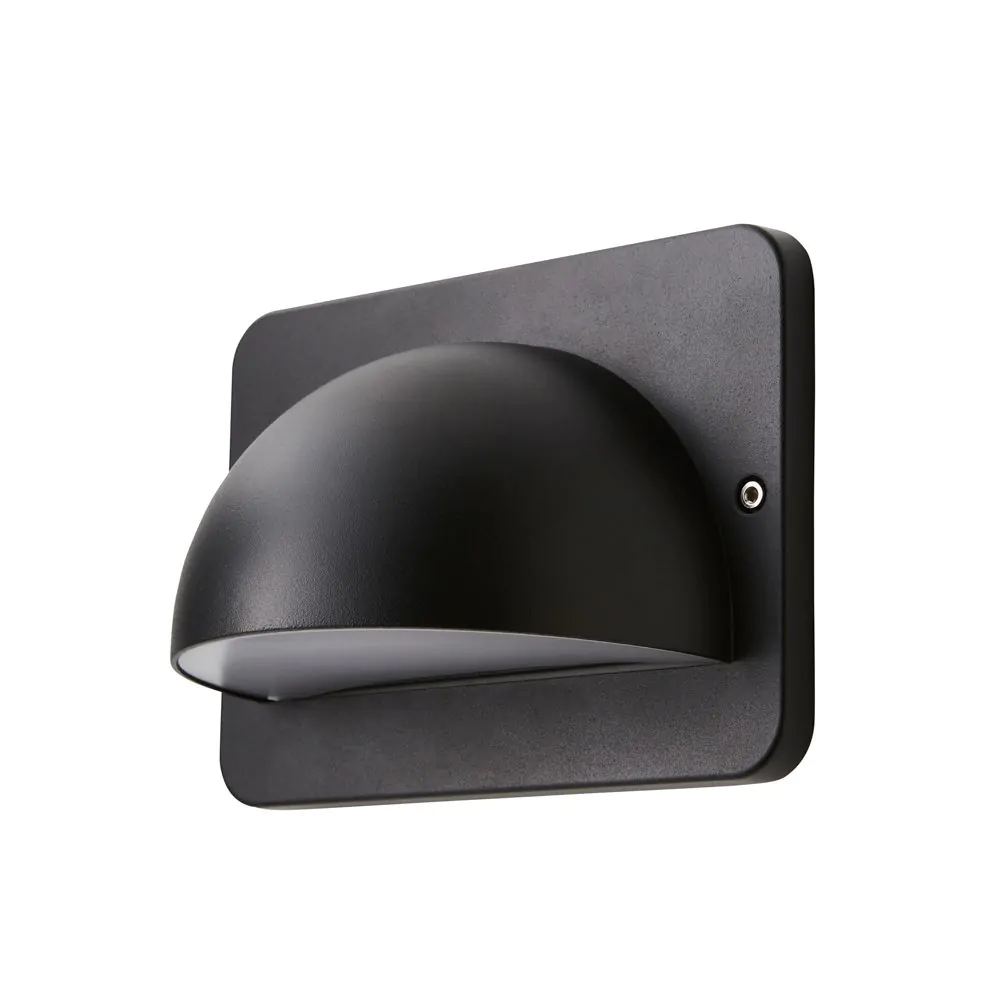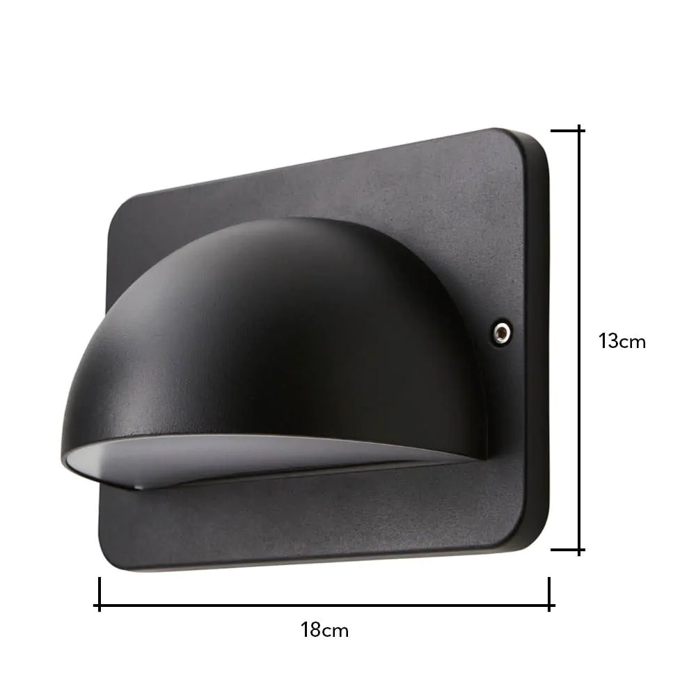 Bring a modern aesthetic to the outside of your home with the Jude Outdoor LED Wall Light. This wall light is IP54 rated, meaning that it is protected against outdoor weather conditions, and comes in a sleek black finish for an urban appearance. It is also LED integrated, meaning you do not need to buy bulbs for this light, and features a compact half dome design, making it able to be used as either an up or a down light.