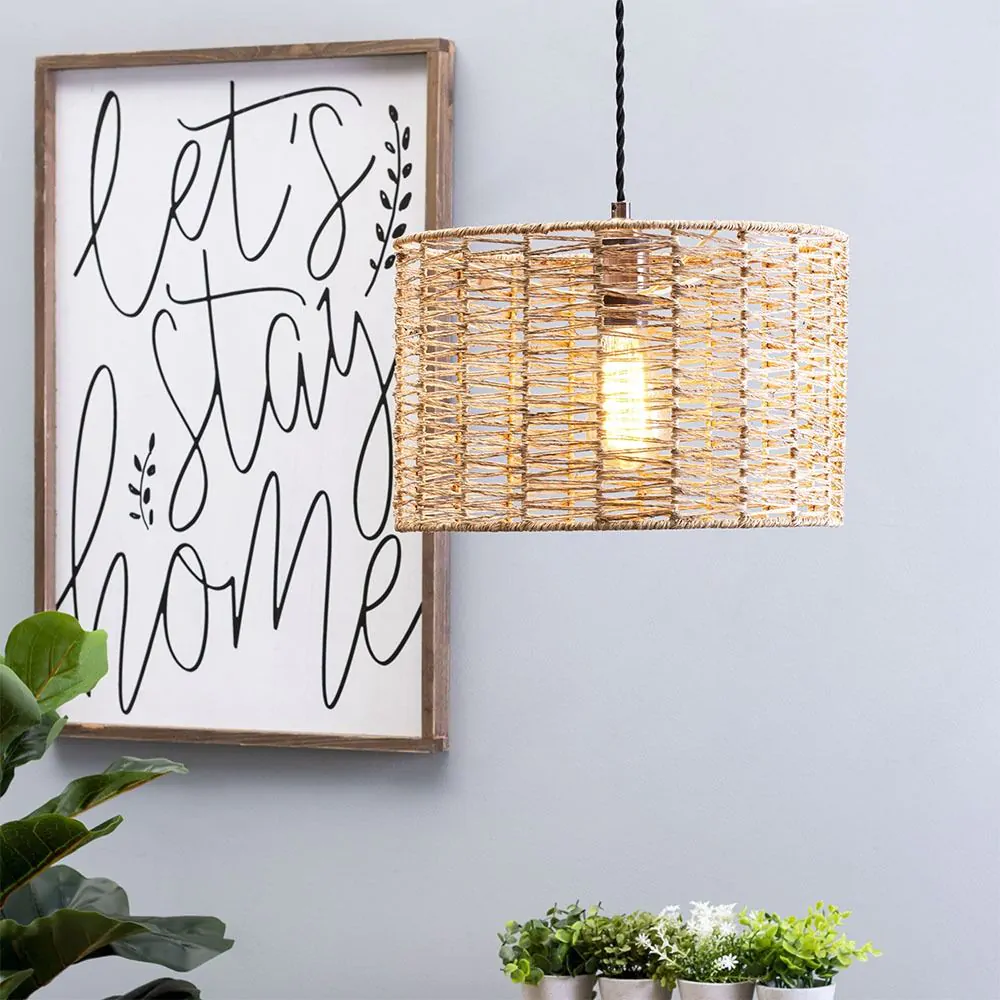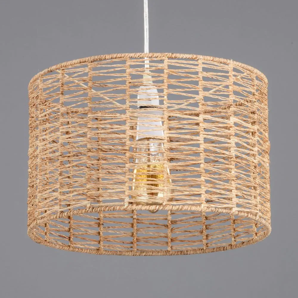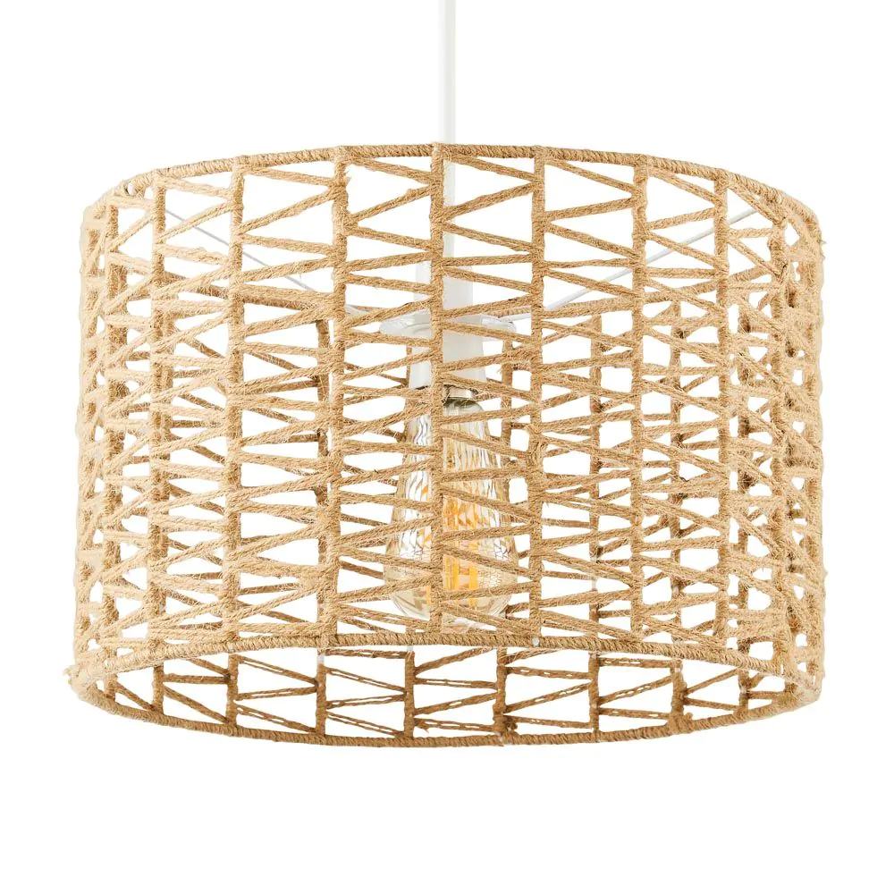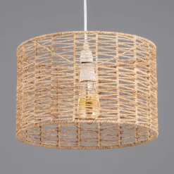 The Jute Cylinder Shade provides your interior home lighting arrangements with an eclectic, bohemian look, with a gorgeous natural finish and sustainable materials that look great in any home, modern or traditional. The unique, detailed design has a soft, elegant look that adds an accented presence into your décor. Encompassed within, the warm light escapes through the details to create a gorgeous, warm mood lighting feature, great for creating a more relaxed, soothing environment In your home.