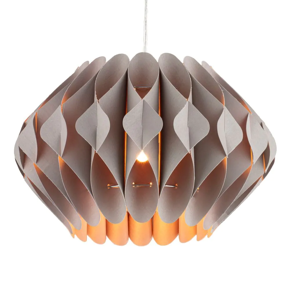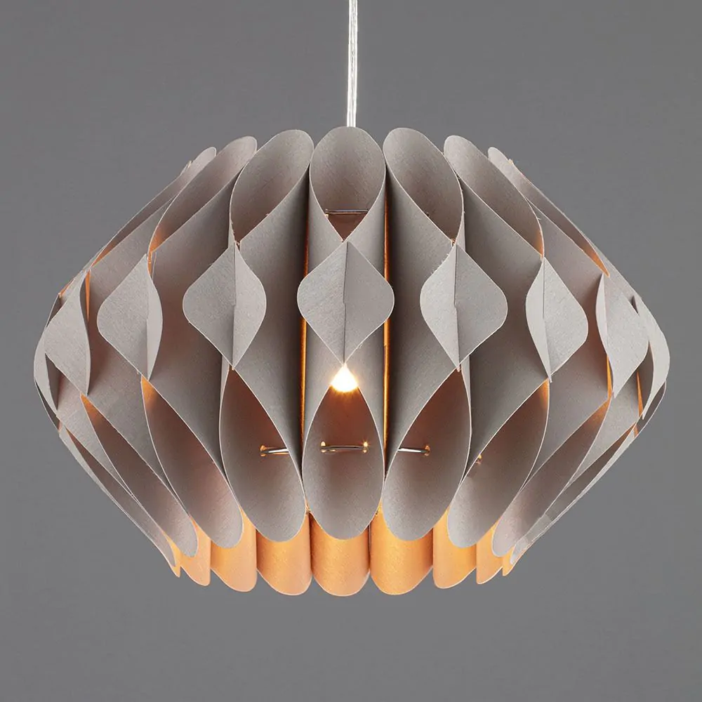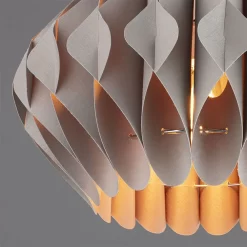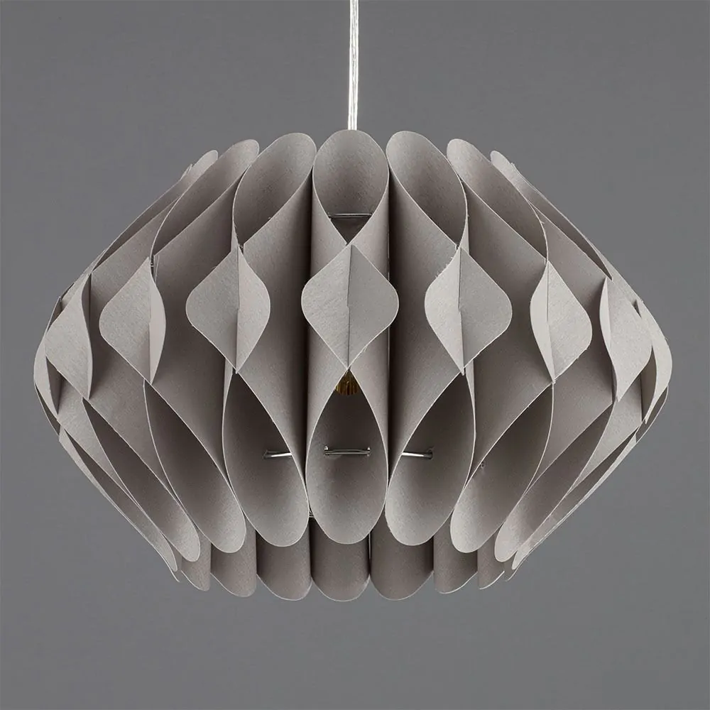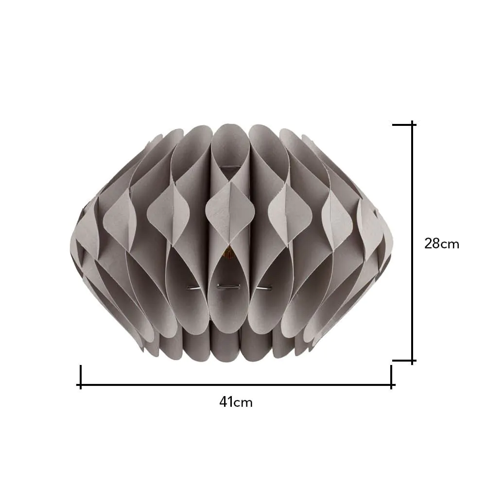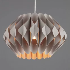 The Landon Easyfit Shade in a stunning, natural finish is the perfect home accessory for you. With a geometric design, the fabric material wraps and rolls into a unique pattern, perfect for creating a more subtle statement in your home. The warm light within diffuses through the fabric and emits a warm, calming glow into the room, creating a relaxed atmosphere perfect for any living room or bedroom.