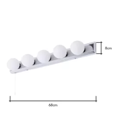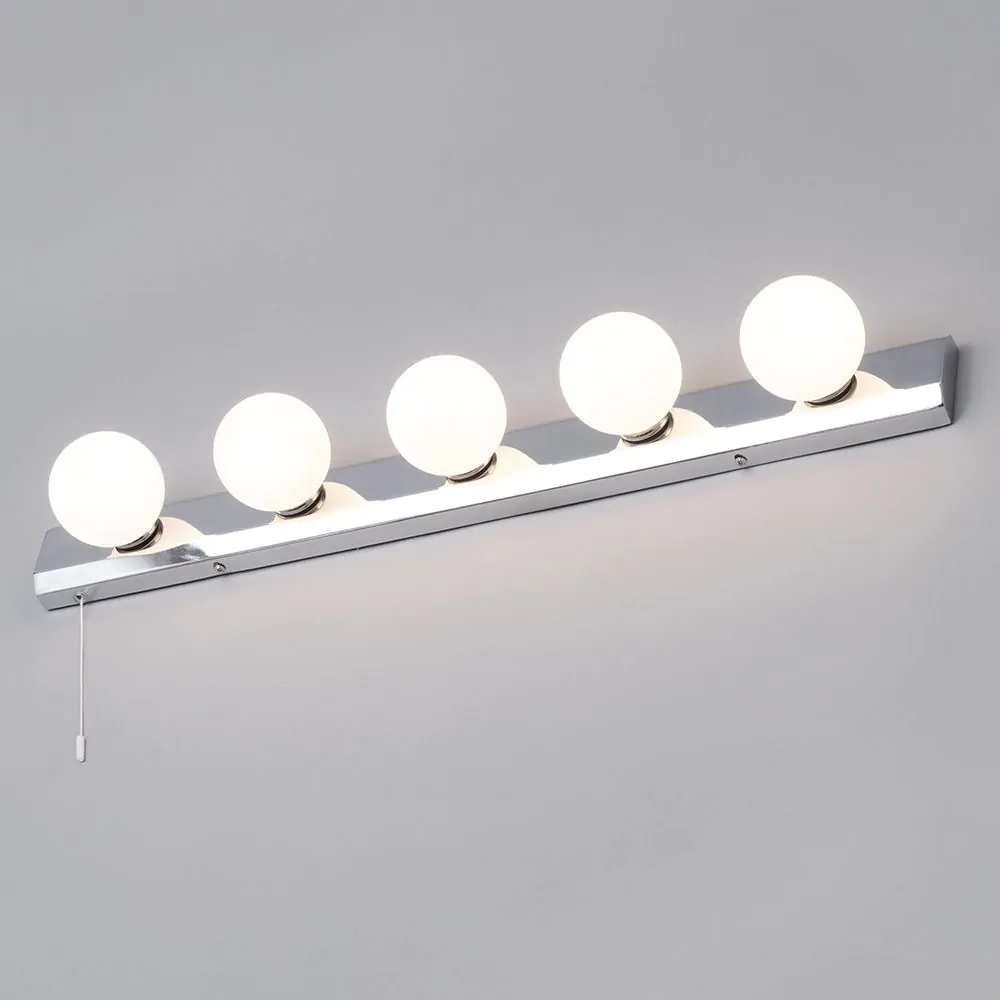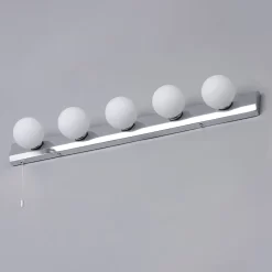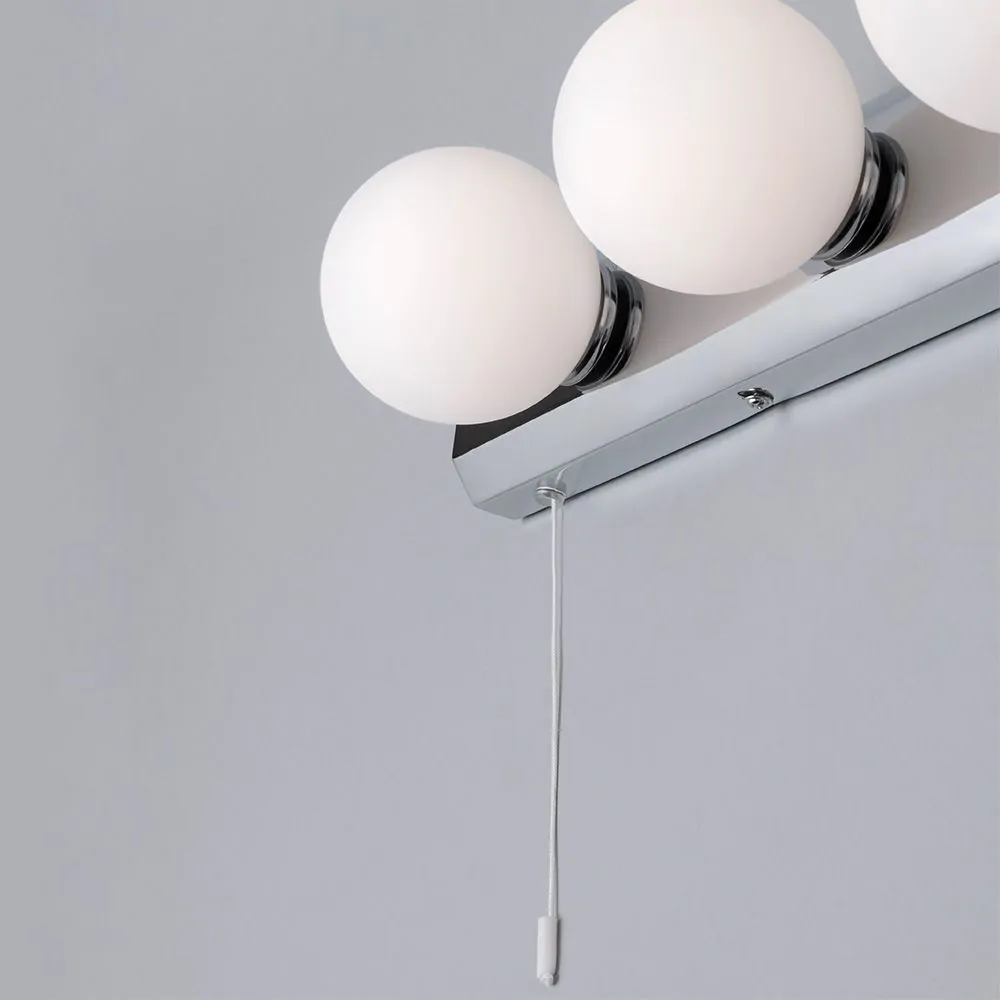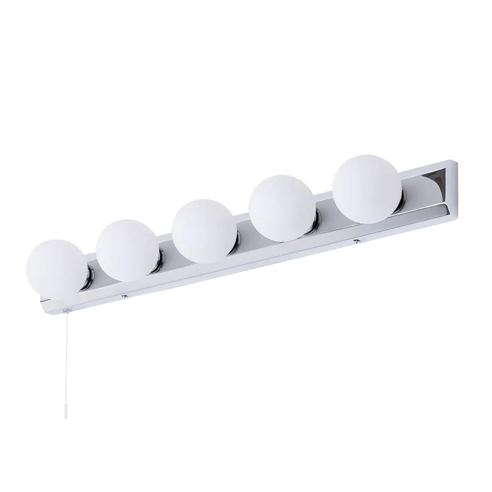 Bring a flair of old Hollywood glitz and glamour to your décor with our Lara Bathroom Wall Light. Finished in chrome, this stylish addition is perfect for styling among your dressing room arrangements, with 5 opal glass shades that diffuse the light within and provide the space with a practical task light perfect for touching up your makeup. IP44 rated, this light can also be used within the appropriate areas of your bathroom and feature a handy pull cord for extra ease and efficiency.
