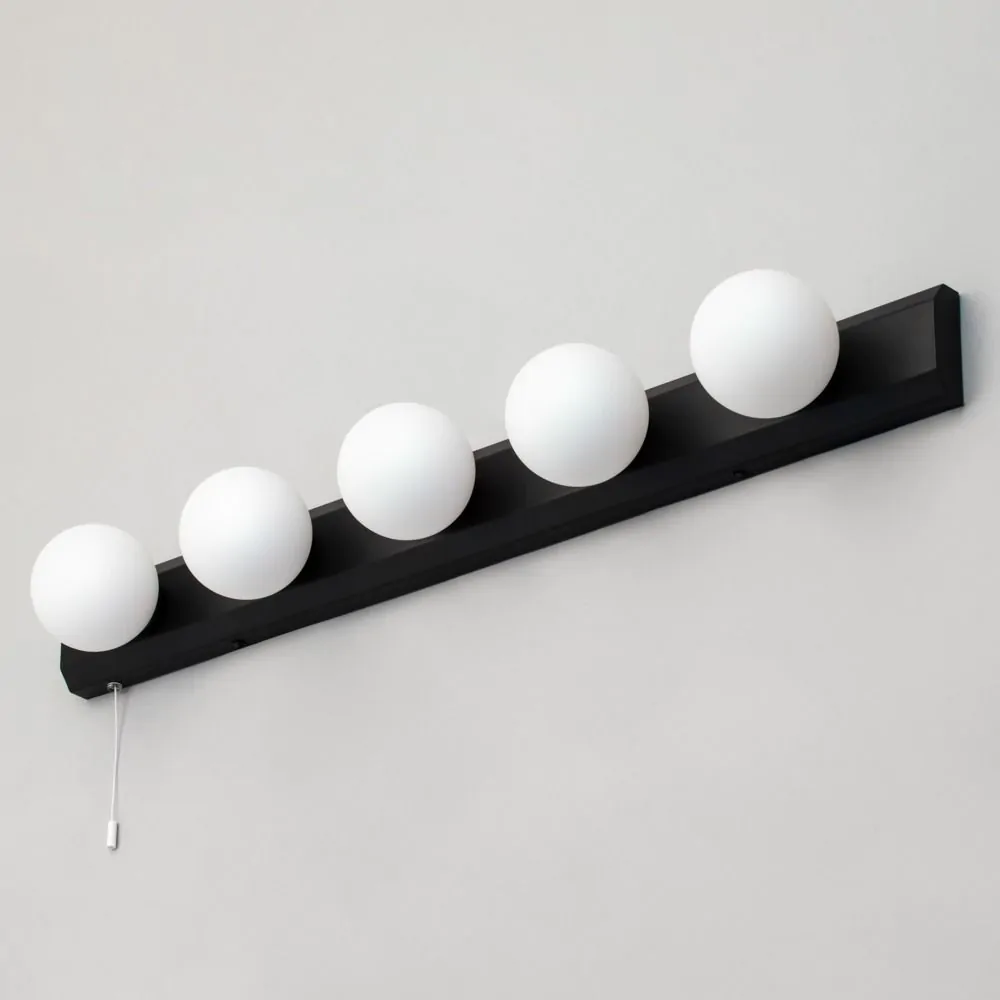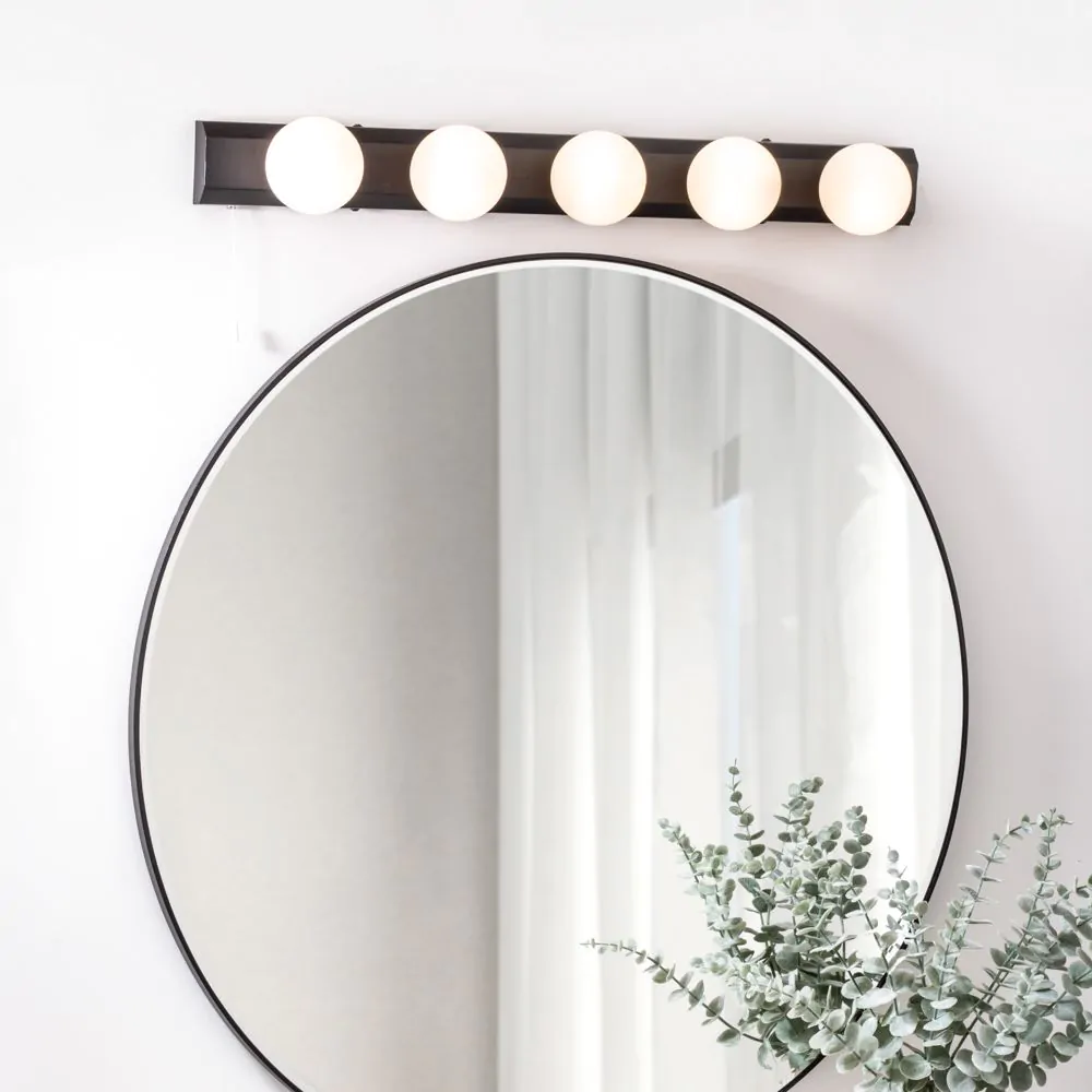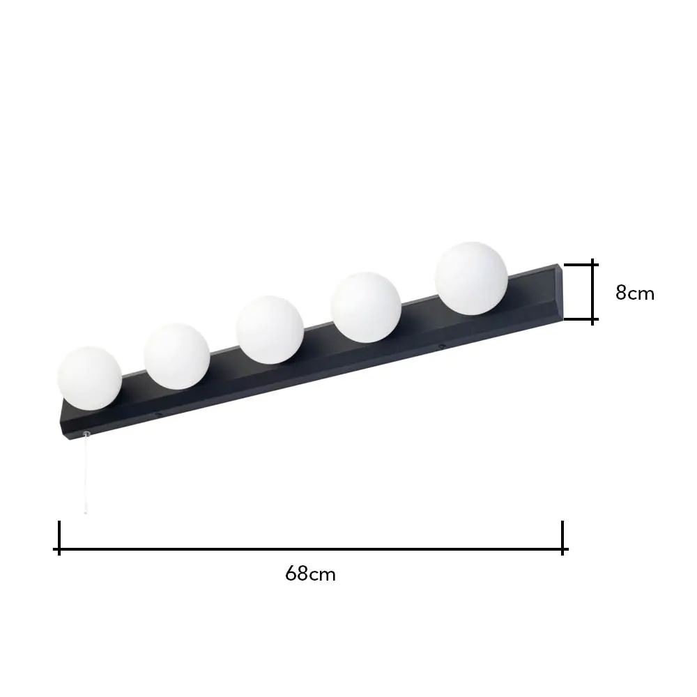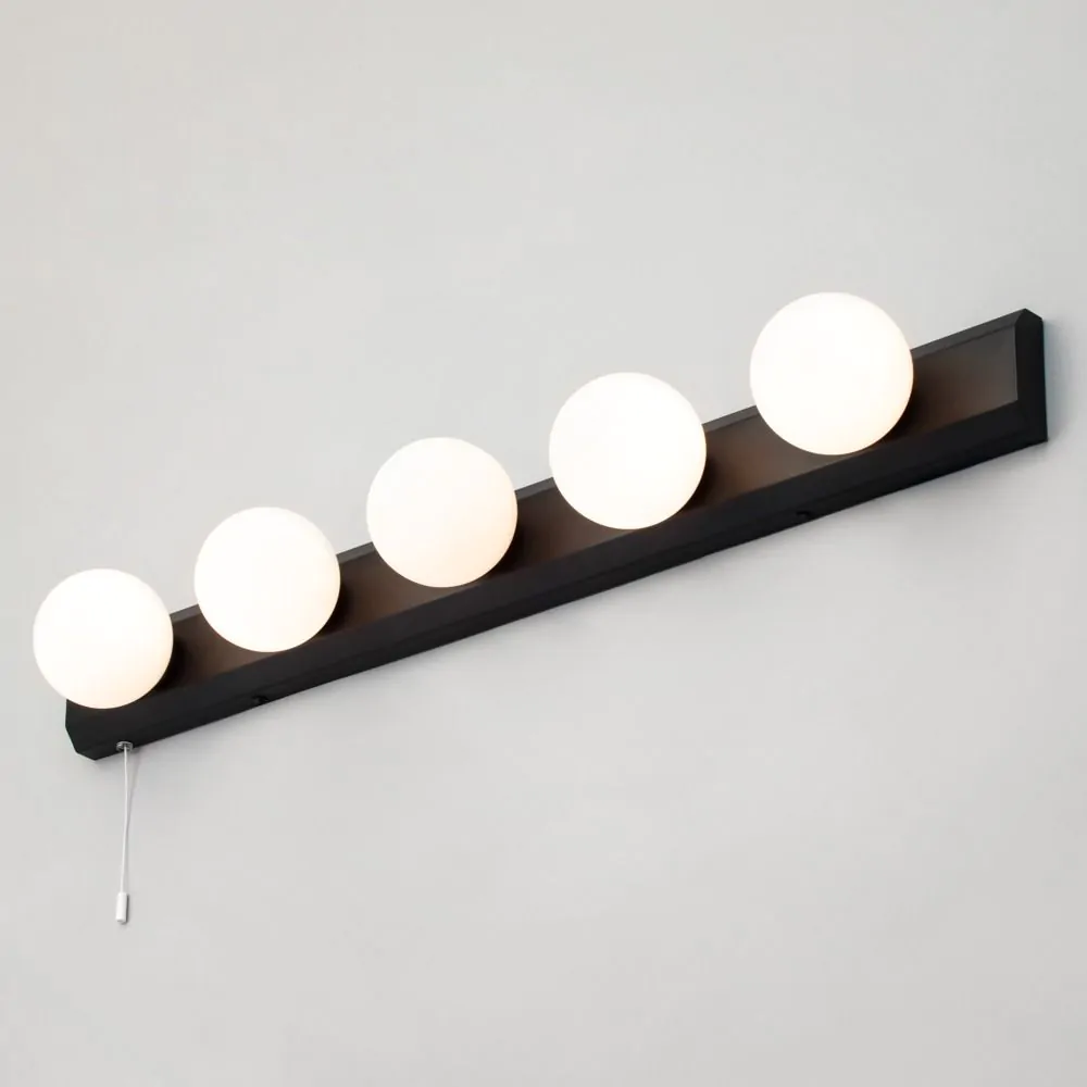Bring an old Hollywood flair to your dressing room with our gorgeous Lara Hollywood Style Bathroom Wall Light, with a matte black base for a modernised touch that blends wonderfully into any home décor. The 5 opal shades help to diffuse the light for a softer glow as the wall light shines a practical task light through the space – perfect for illuminating your face as you apply your makeup. Paired with a mirror, this glamorous addition creates a beautiful display, and can even be safely styled in your bathroom due to the handy IP44 rating.