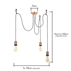 Laura 3 Light Ceiling Pendant, Antique Copper
