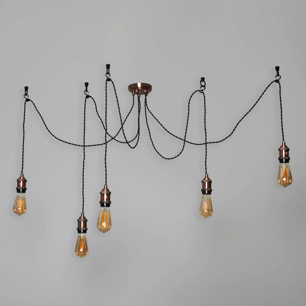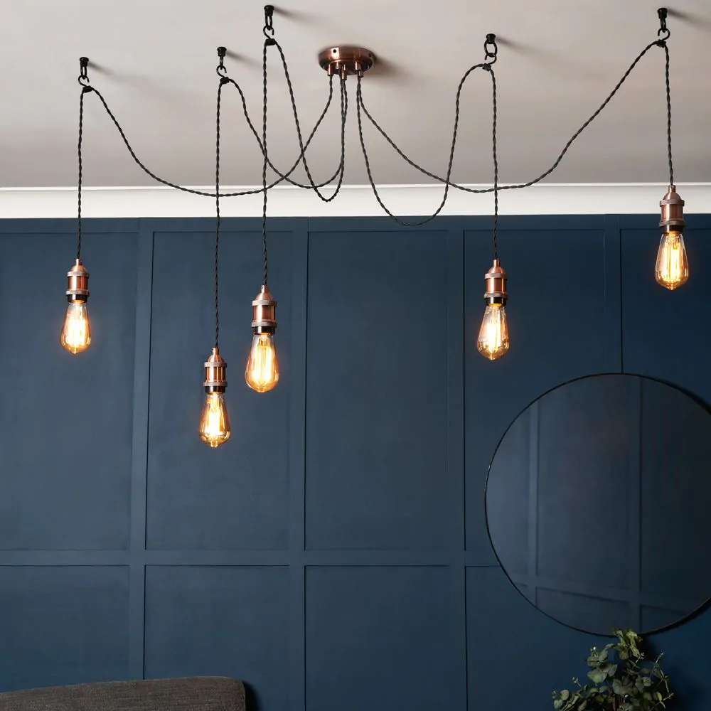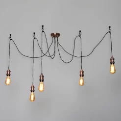 Enhance your interior decor with the charm of the Laura 5 Light Ceiling Pendant in Antique Copper. This pendant light serves as a striking centrepiece, giving your space a touch of vintage elegance. The 5 lights provide ample lighting to fill larger rooms and provide a warm glow that creates an inviting atmosphere. Perfect for styling over dining tables or kitchen islands, or just to create a stunning focal point in a room or hallway. Pair this light with a vintage filament lightbulb to enhance the vintage feel within your space.
