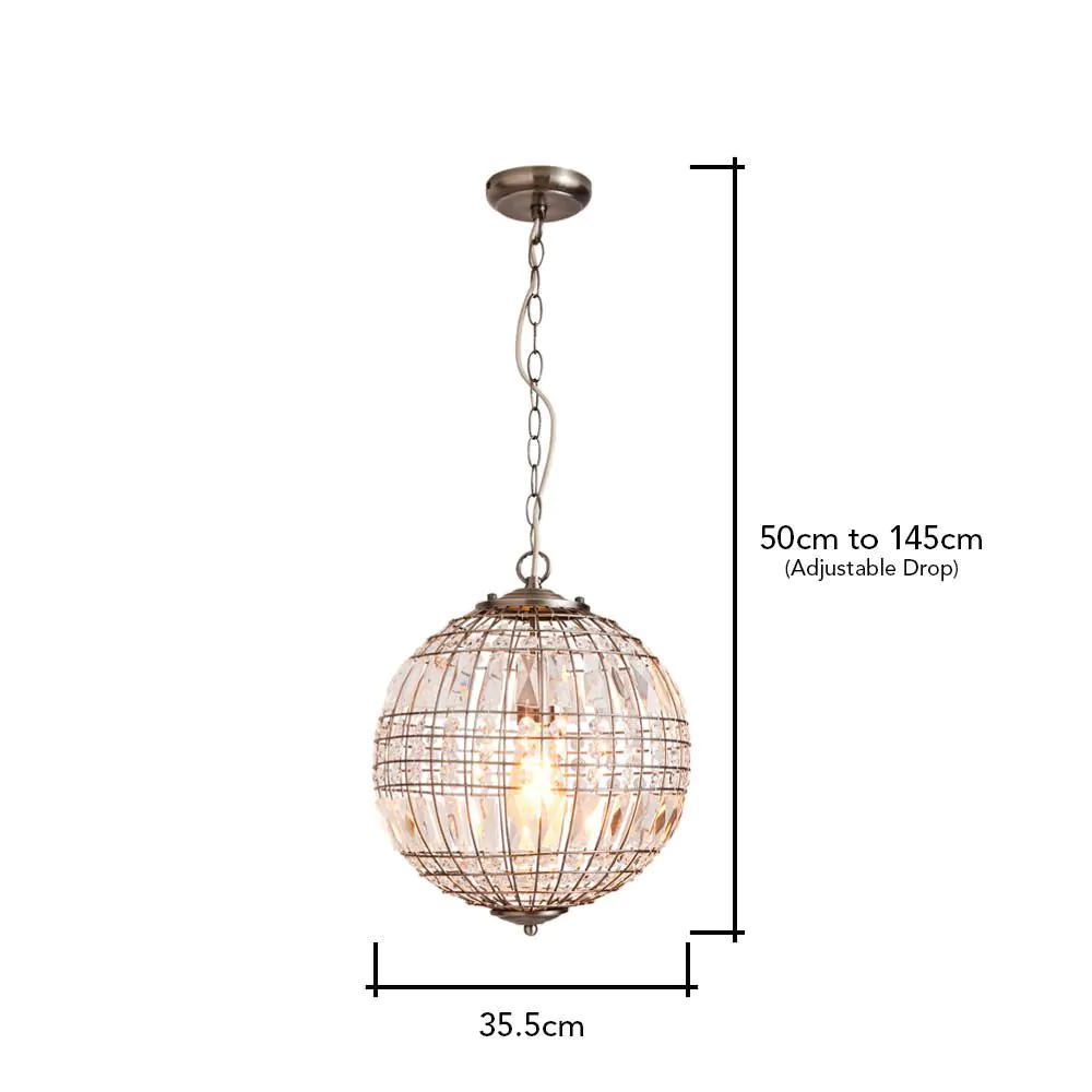 Leanne 1 Light Small Glass Crystal Ball Pendant, Pewter