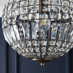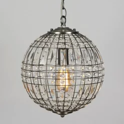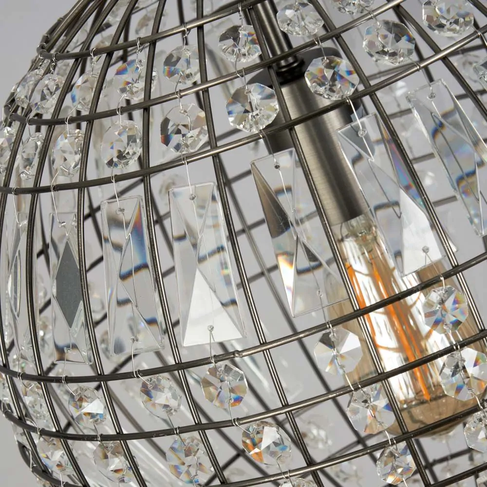 Add a touch of luxury to your home décor with the Leanne 1 Light Small Glass Crystal Ball Pendant. This ceiling fixture comes in a pewter finish for a sophisticated aesthetic and is adorned with crystal effect prisms which reflect the light as it shines out, casting a stunning pattern of light across the room. This small ceiling pendant is also ideal for styling in pairs on either side of a bed or couch over some side tables for a glamorous accent lighting look.