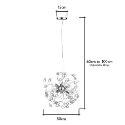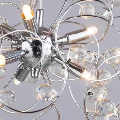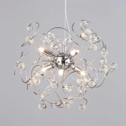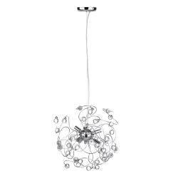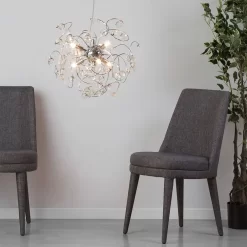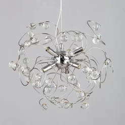 The Lila Sputnik ceiling light is a bold, eye-catching piece that’s sure to look the part in any contemporary décor! This fitting hangs from the ceiling as a gorgeous centrepiece, with a unique arrangement of crystal droplets supported by swirling arms forming an abstract shade around the central lights. With a chrome finish, this 5 light pendant ceiling fitting is a stylish modern piece that gives great light to any living room, dining room, or bedroom.