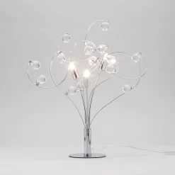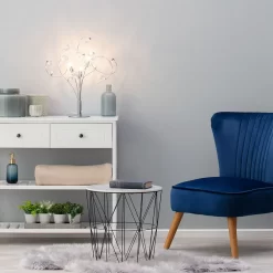 A unique table lamp not only brings that extra ray of light to a room but can also work as a decorative feature and adds character to a room. Our Lila Table Lamp features stunning curled bars that have gorgeous crystal effect droplets hanging from them and a smooth chrome finish, which all works beautifully together to create this incredible design. Whether it’s a bedroom that needs an extra ray of light or a living room, this fitting has you covered.