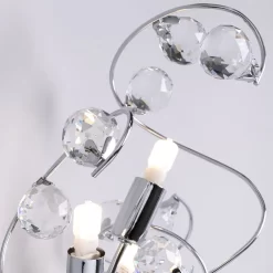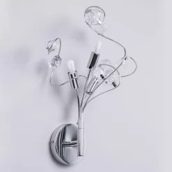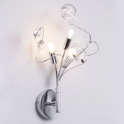 The spiralling chrome arms of the Lila wall light feature 3 small lights and a collection of decorative crystal features, gives a more elegant look to the fitting. Ideal for a dining room or living space, this gorgeous contemporary wall light is sure to be a welcome addition to any décor.
