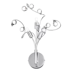 The spiralling chrome arms of the Lila wall light feature 3 small lights and a collection of decorative crystal features, gives a more elegant look to the fitting. Ideal for a dining room or living space, this gorgeous contemporary wall light is sure to be a welcome addition to any décor.