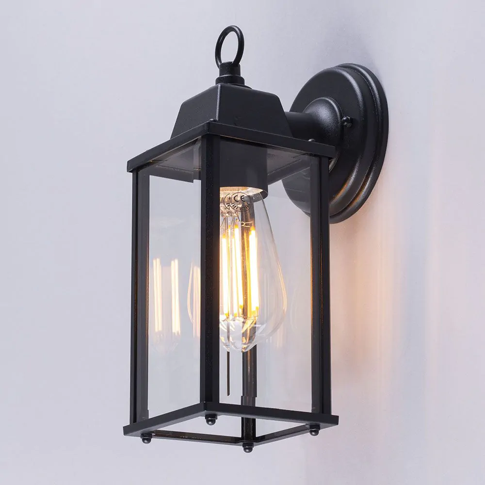 Lille Outdoor Bevelled Glass Wall Light Lantern, Black