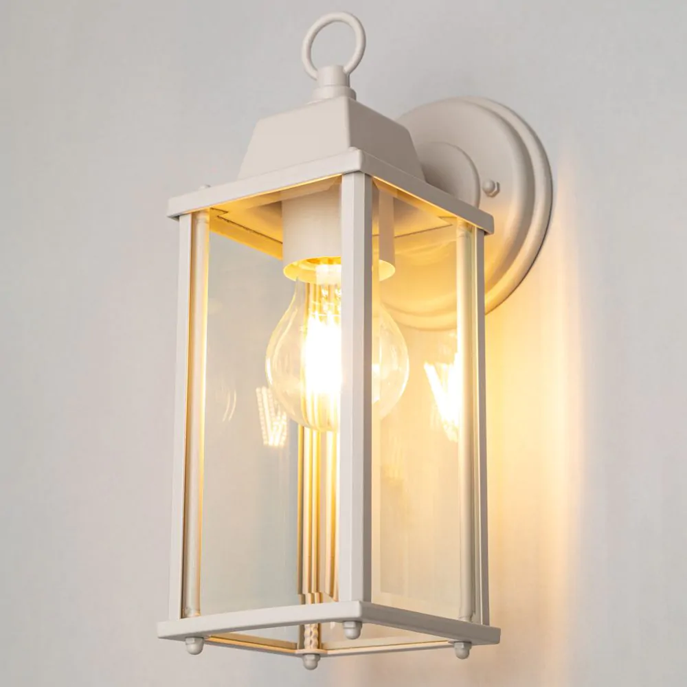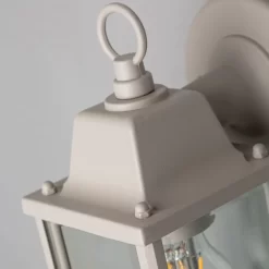 Stylish and sophisticated lighting looks for the outside of your home with the Lille Outdoor Bevelled Glass Wall Light Lantern. This lantern comes in a soft dove grey finish and features stunning bevelled glass panes that are ideal for displaying separately sold vintage filament bulbs. It is also IP44 rated for water resistance against outdoor weather conditions.