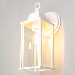 Traditional style lanterns for your porch or entryway with the Lille Outdoor Bevelled Glass Wall Light Lantern. This wall lantern is IP44 rated for durability against outdoor weather conditions. It also comes in a stunning ivory finish, blending with white walls and doors seamlessly, and comes with a stunning bevelled glass pane design that is ideal for displaying a separately sold vintage filament light bulb within.