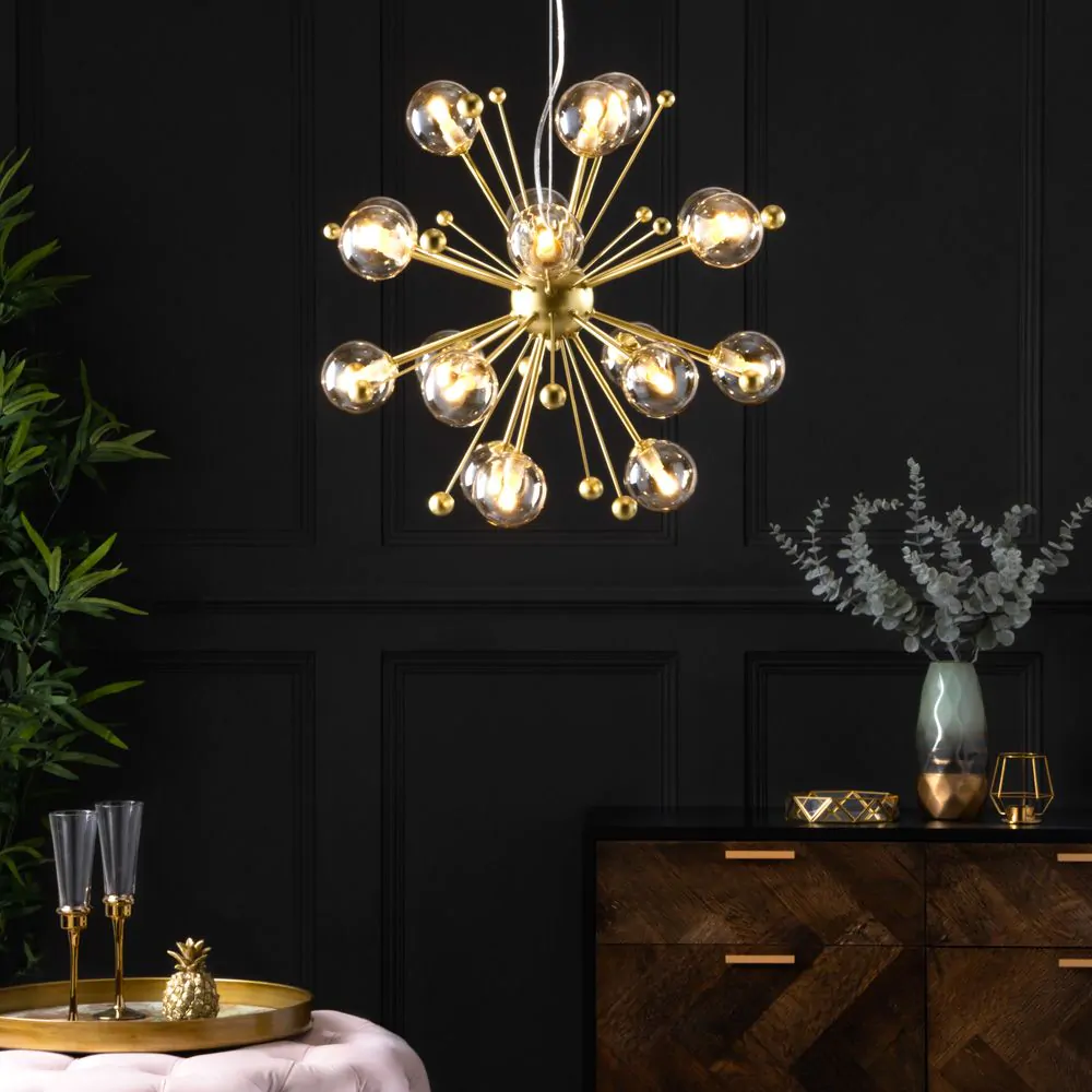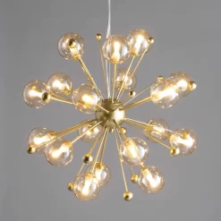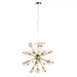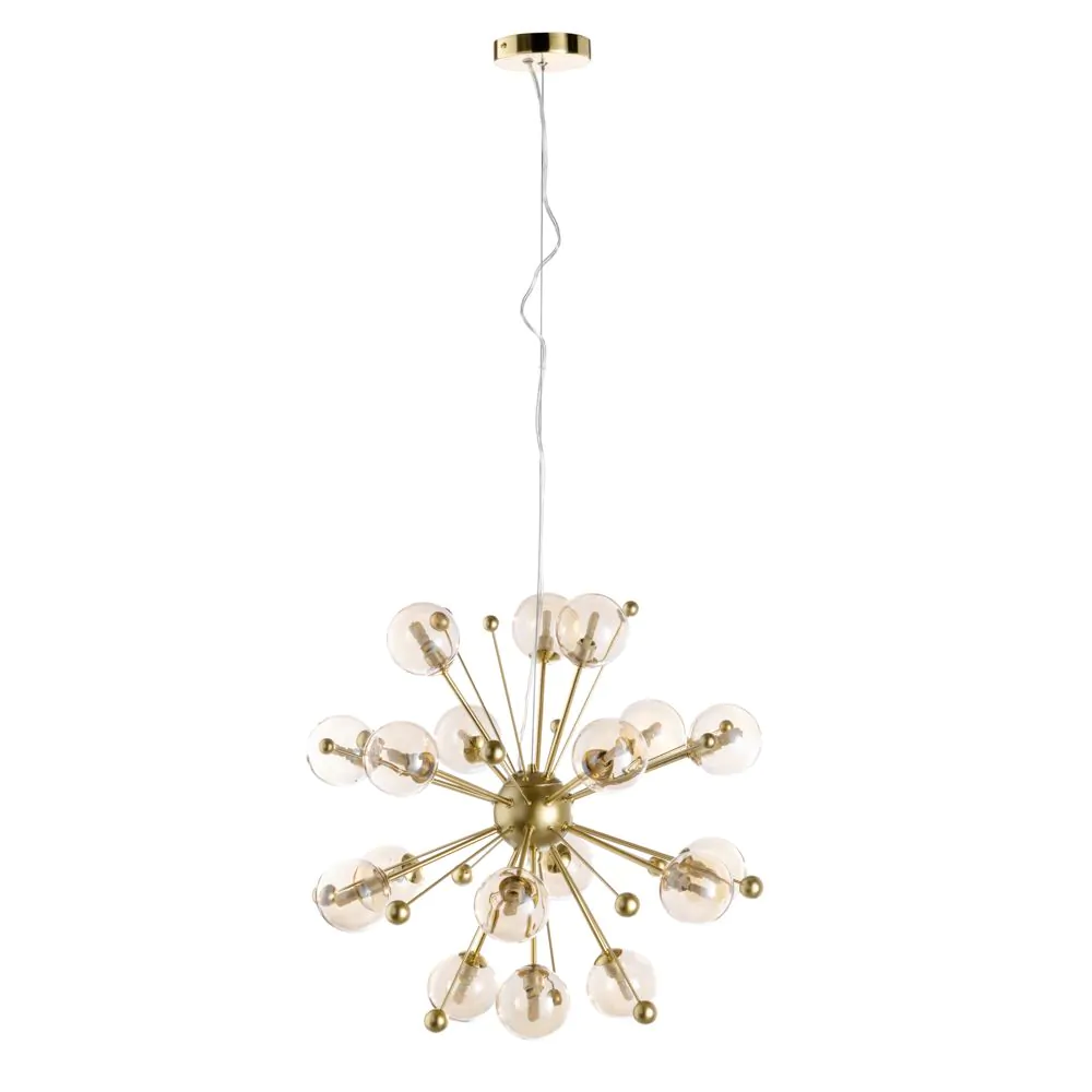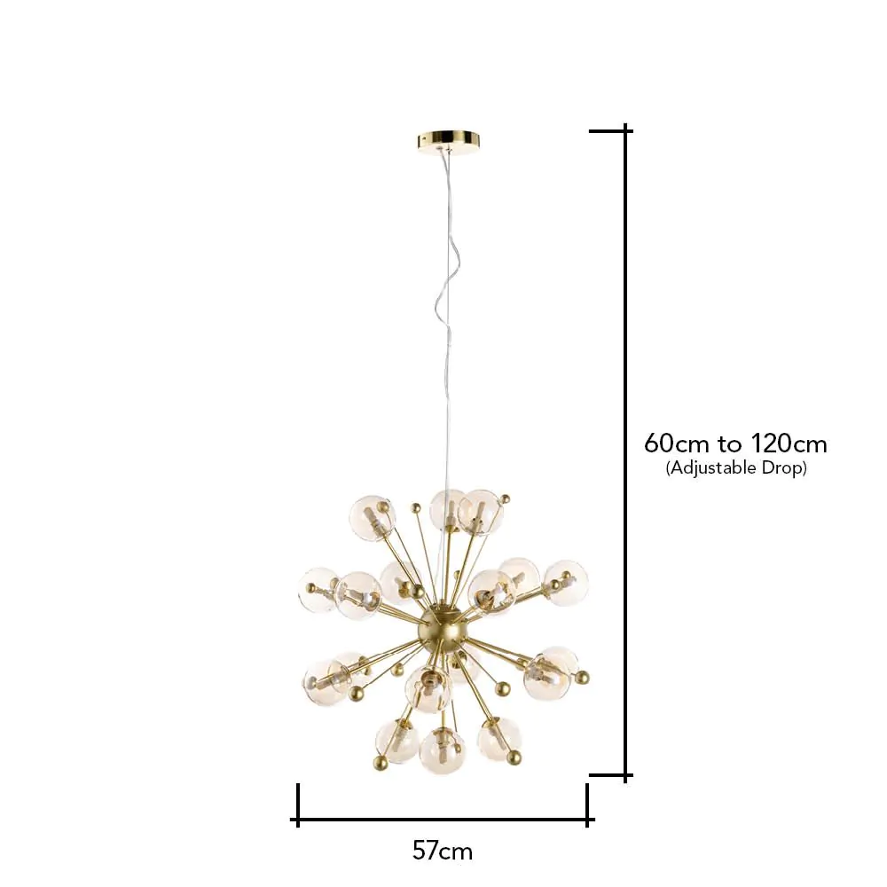 Bring the drama to your interior decor with the stunning Lincoln Pendant Ceiling Light. This statement fitting is finished in a stunning satin brass tone; paired beautifully with the champagne tinted glass shades from which the warm light fills your room with an ambient glow. This stylish centrepiece is ideal for adding a contemporary statement to any living room, dining room or bedroom.