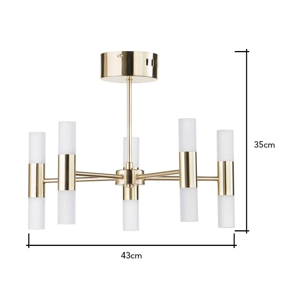Lois 10 Light Semi Flush Ceiling Light, Brass