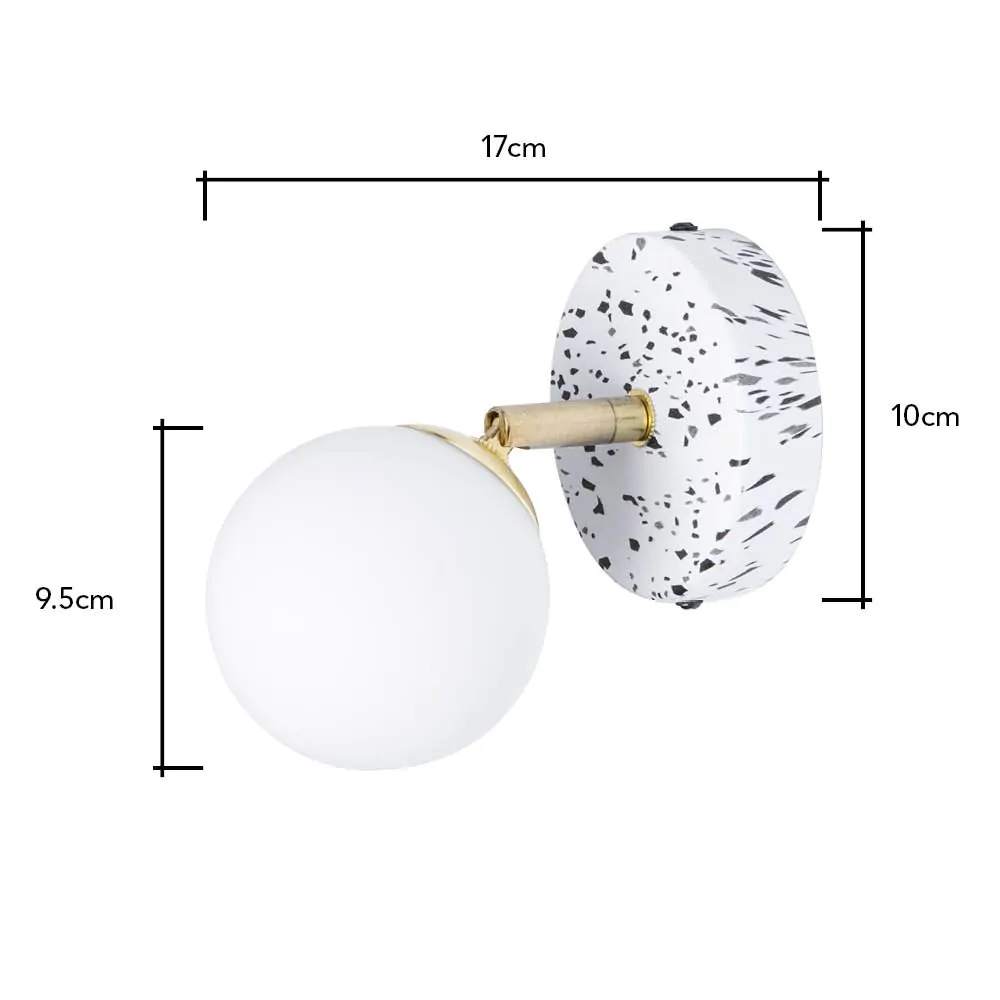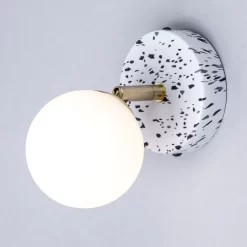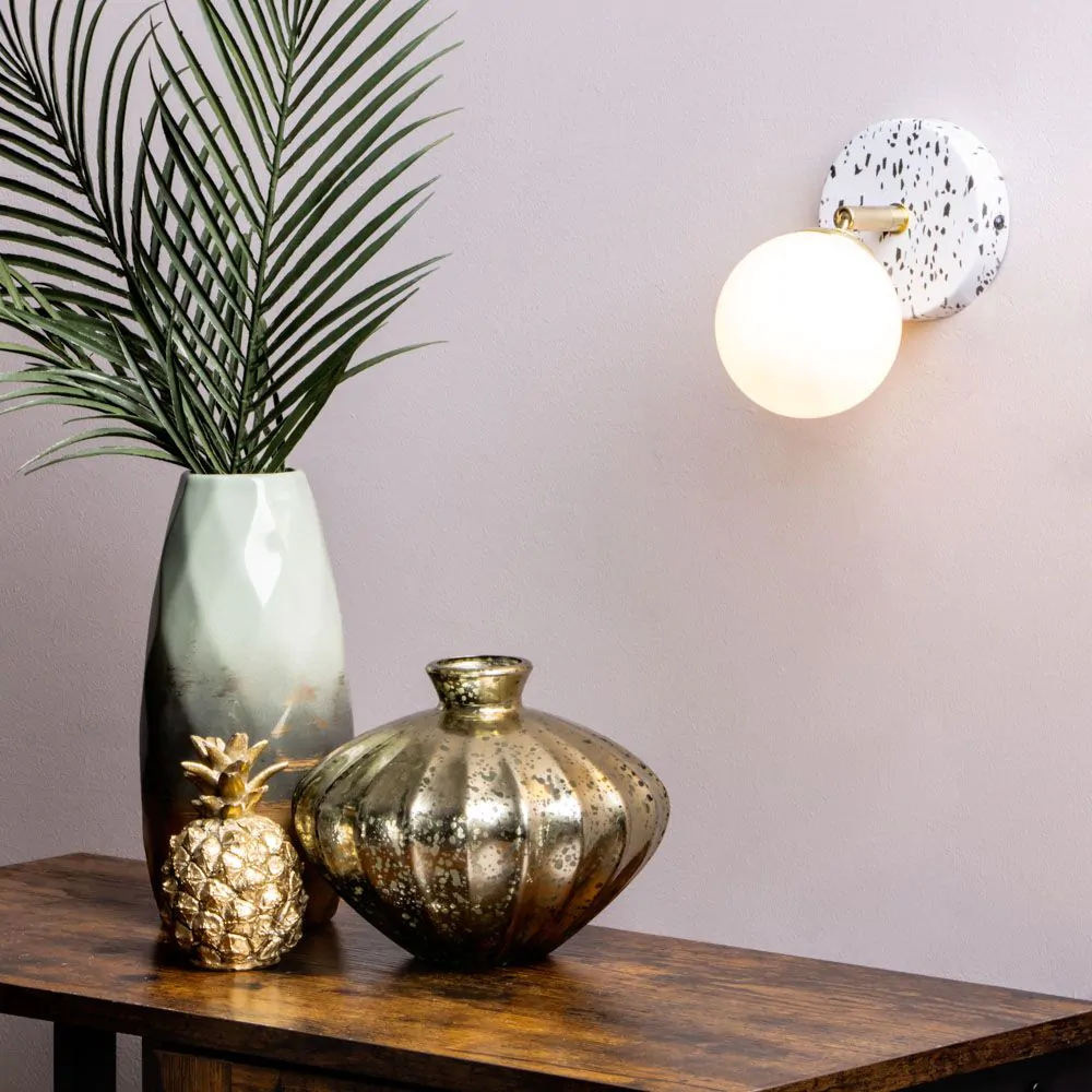 The Lott Terrazzo Opal Ball Spotlight is the perfect touch to any room. The pop of satin brass beautifully complements the white marble base to create a signature post-modern style. The opal glass shade diffuses the light within and fills your room with a warm glow. Double up or even triple up on this fitting for the perfect eclectic interior. Use on either wall or ceiling for extra versatility.