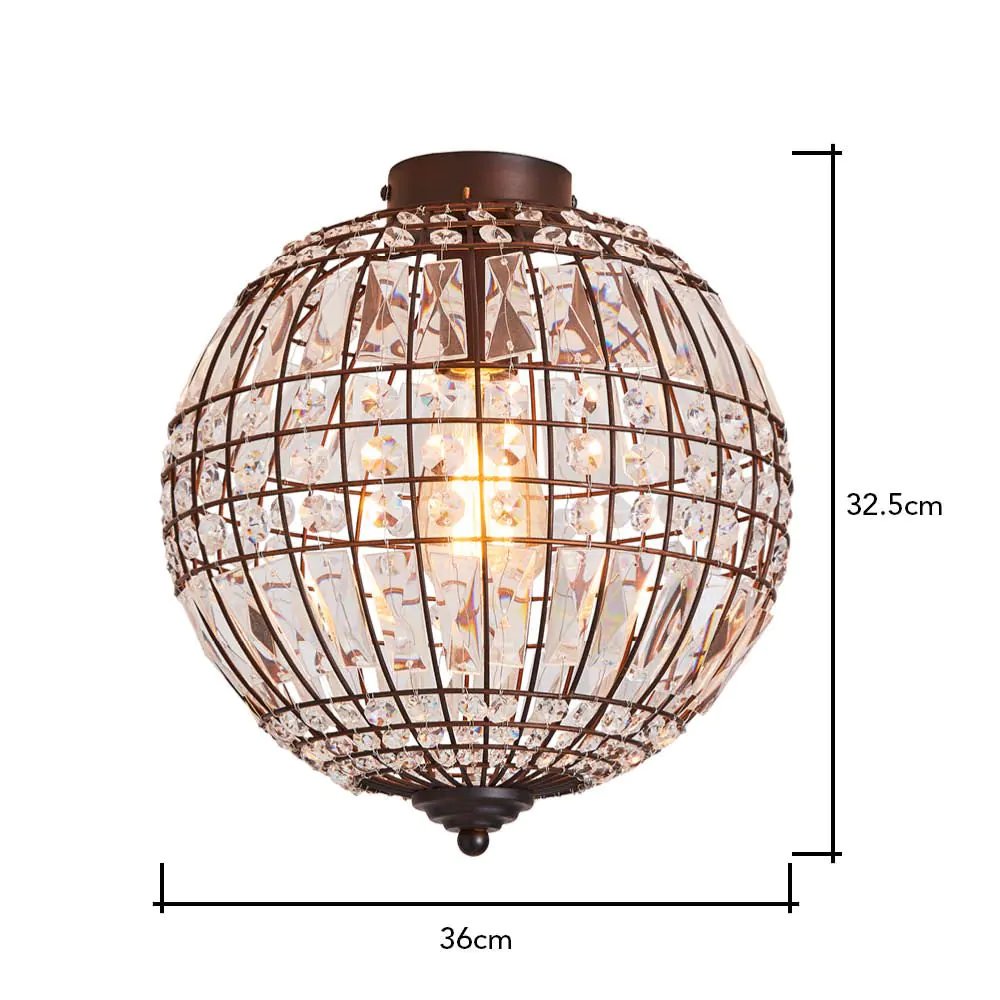 Add a touch of glamour to your home décor with the Louisa Crystal Ball Flush Light. This ceiling light features a gorgeous bronze finish for a traditional touch to your décor and features crystal effect droplets which refract the light as it shines out, casting rainbows across your wall. It is also a semi flush fitting, meaning that this light has a minimal drop height meaning that it is ideal for low ceilings in hallways and landings.