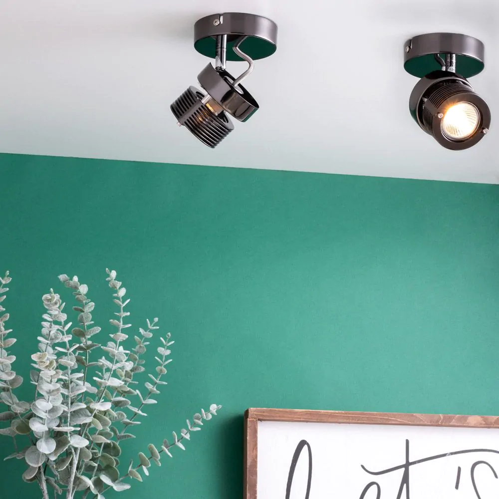 Add an industrial style to your interior lighting arrangements with the Lucas Single Spotlight. This spotlight comes in a sleek black chrome finish and can be used as either a wall light or a ceiling light for practical illumination in your interior. With a ribbed design, this light exudes a very modern appearance and looks ideal in urban households, it is also fully adjustable, meaning that you can direct light wherever you need it most.