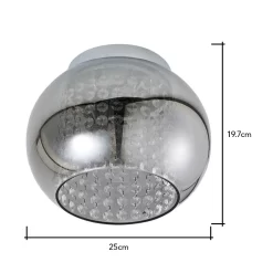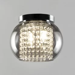Bring a hint of modern glamour to your décor with the Lucia Cloche Bathroom Flush Ceiling Light. This ceiling fixture is IP44 rated for water resistance and is ideal for styling in bathrooms with low ceilings due to the flush design. It also comes in a chrome finish with a smoked glass shade which encases crystal effect beading within, reflecting the light as it shines out to create a sparkling effect.
