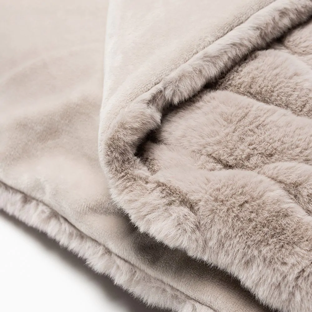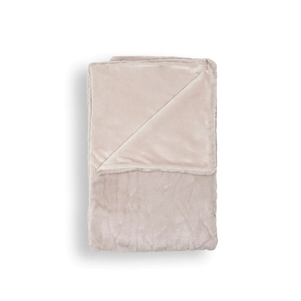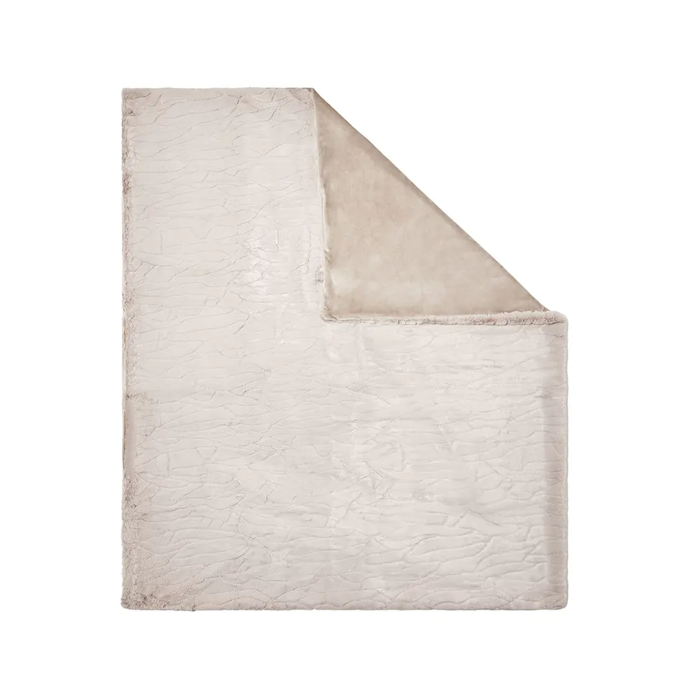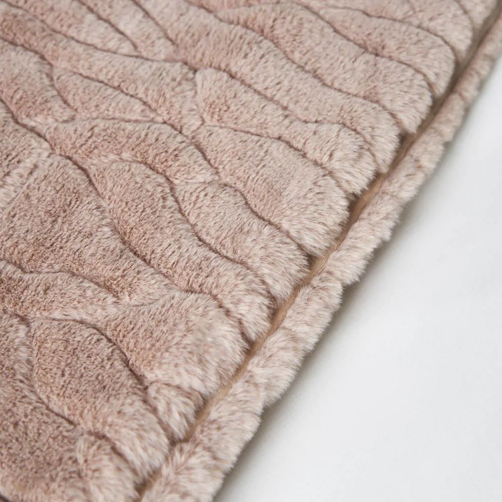 Luxury Embossed Rabbit Faux Fur Throw, Tan