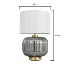 The Lyna Table Lamp with Smoked Glass Base and White Shade in Satin brass is a striking accent to add to any room. The satin brass finish brings a contemporary feel to this art deco table lamp. Accompanied by a white shade the Lyna table lamp diffuses a bright glow of light.