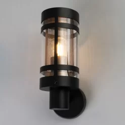 Malone Outdoor Wall Light with Brass Mesh, Black