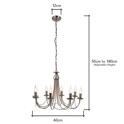 Create a stunning centre-piece with the Marilyn 8 Light Chandelier. The Marilyn Chandelier has a simplistic structure, designed to add a classic and traditional style with a modern touch, featuring 8 curved arms and candle bulb holders with a pewter finish. This stunning ceiling light is perfect for a dining room, lounge or hallway and has a height adjustable drop to suit your space.