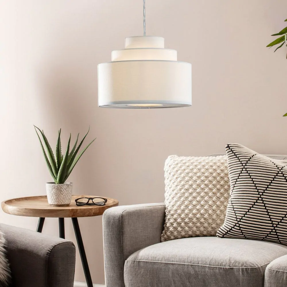 The Meena 30cm Tiered Easyfit Shade in white, is sure to bring a light and airy feel to any home. The contemporary styling of the 3-tiered design makes this lightshade stand out. The white colour of the shade allows it to blend with most homes interior and decor choices, making it a great choice for any home. While the linen material of the shade lets the light radiate through, effectively illuminating your space. Perfect for rented homes, as the lampshade simply fits onto your already installed light fitting, with no assembly or hard-wiring required.