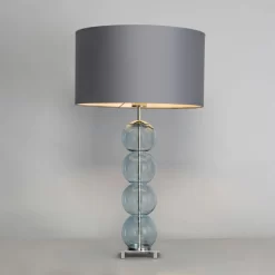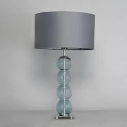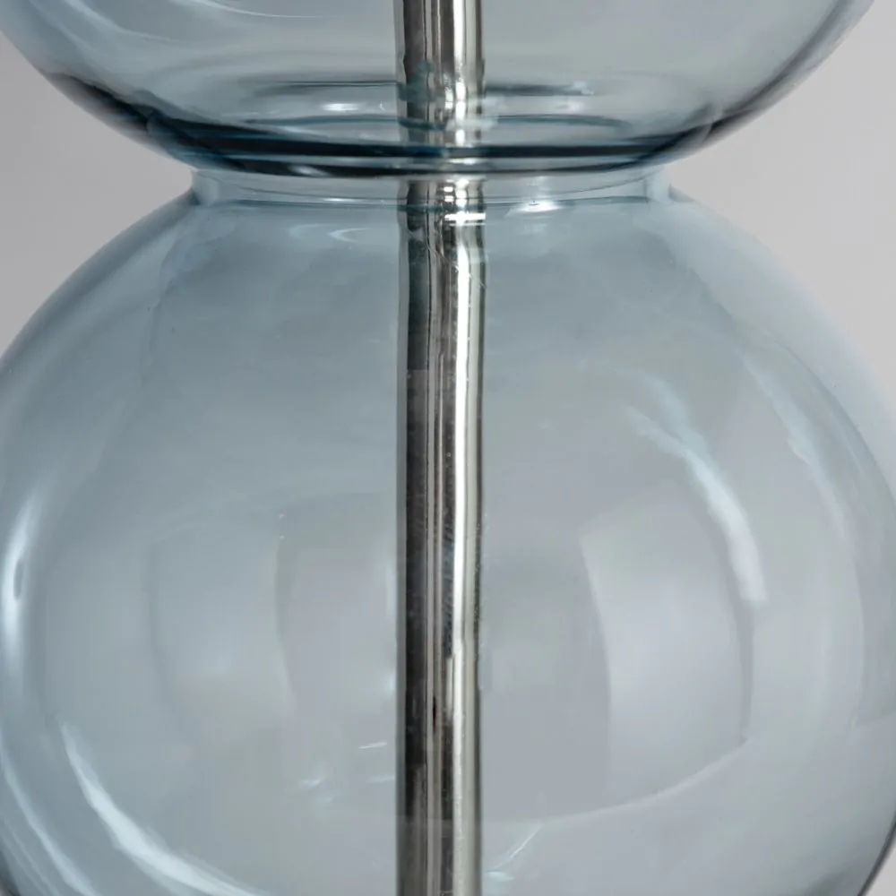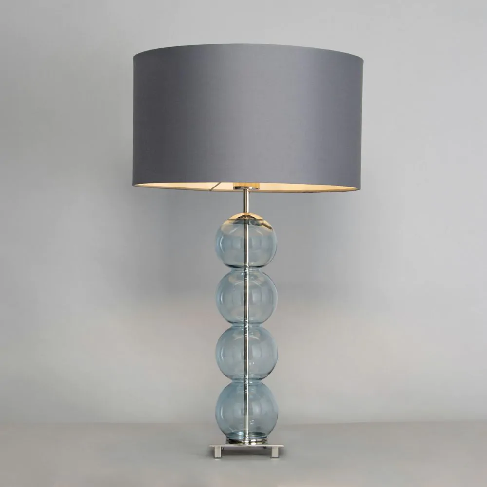 Metro Ball Stacked Table Lamp with Blue Glass Base, Nickel