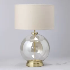 The Satin Brass and Champagne Metro Large Glass Table Lamp provides a classy elegance to any room. This modern lamp has a geometric yet minimal appearance that adds a beautiful subtle minimalism to any room. It’s also extremely versatile, looking great in any modern home and perhaps even among rural décor.