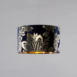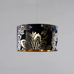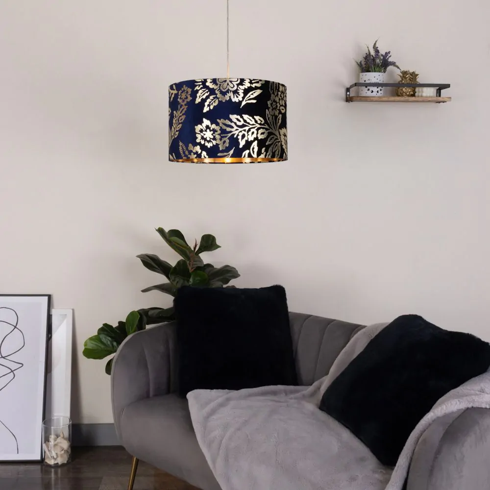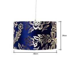 Get a stylish lampshade that brings a decorative touch to your home, with the Mica 40cm Velvet & Gold Print Easyfit Shade. This stunning shade simply attaches to your already installed light fitted, meaning no hard-wiring is required. The navy colour of this lampshade brings a modern touch to your home, while the velvet-effect floral pattern adds a vintage feel. Giving you unique lighting that is sure to stand out within your space. Create a consistent lighting theme through your home by using this shade to upgrade old table lamps and floor lamps too.