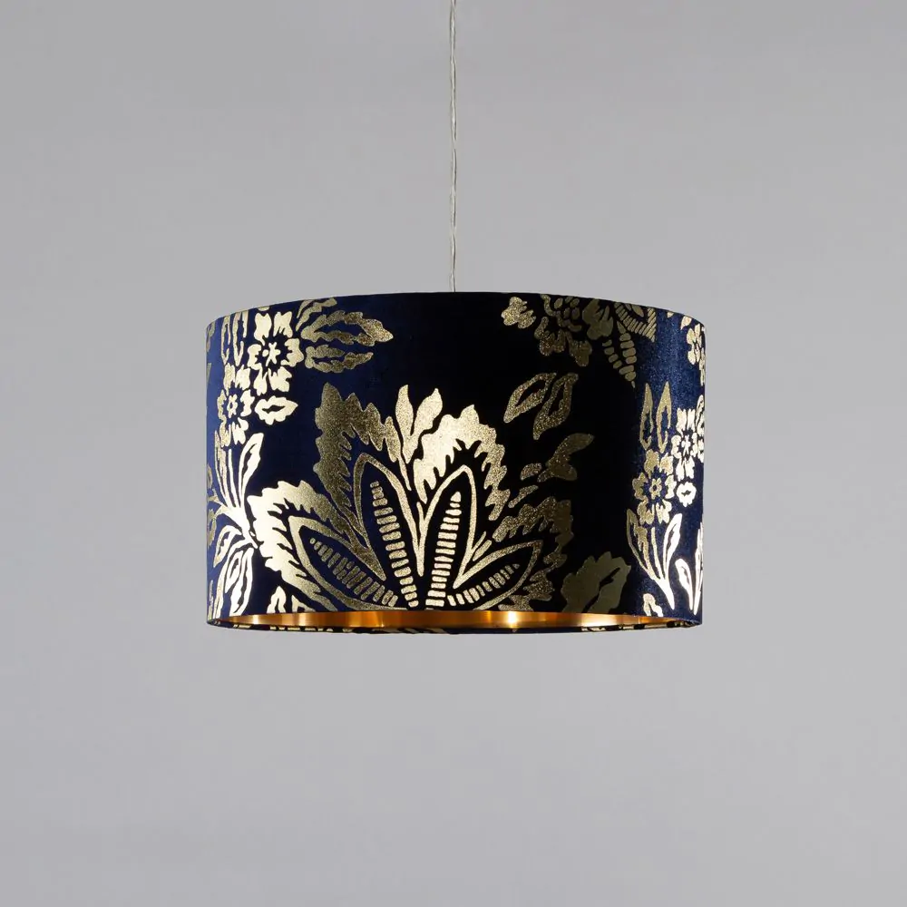 Mica 40cm Velvet & Gold Print Easyfit Shade, Navy