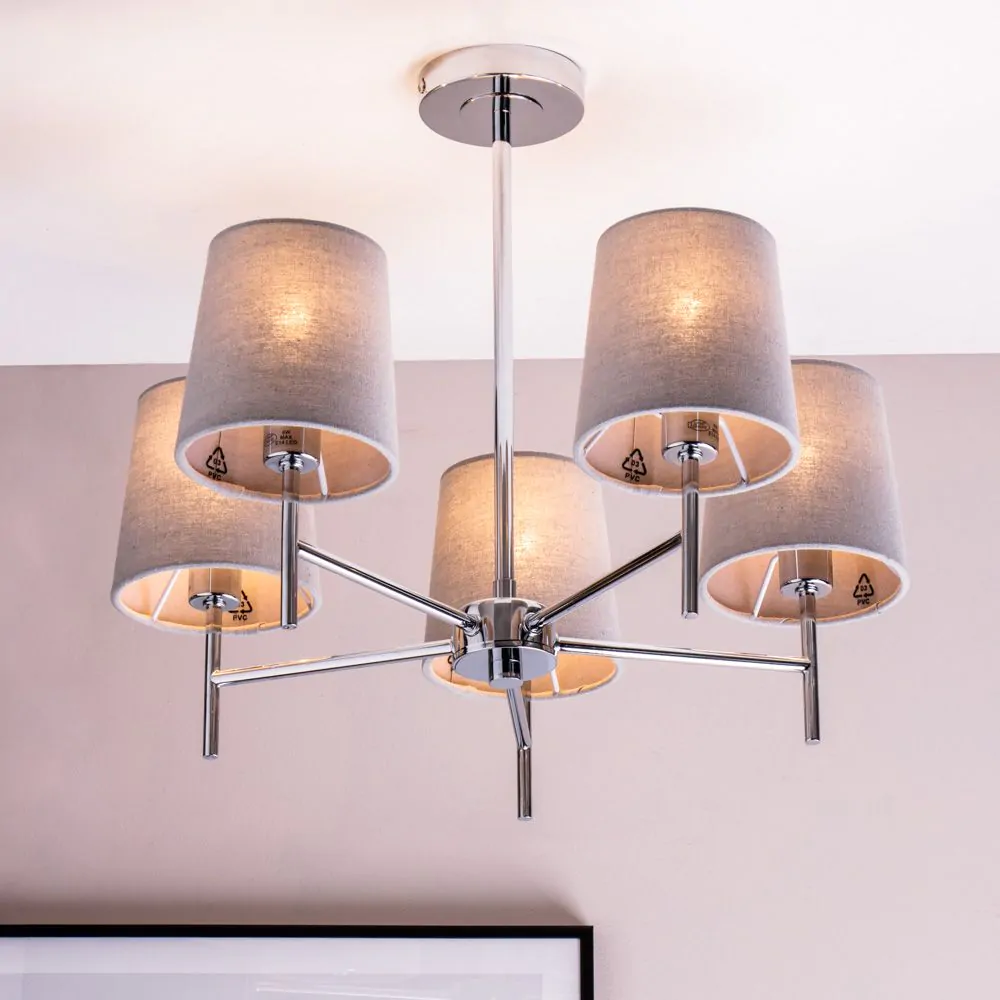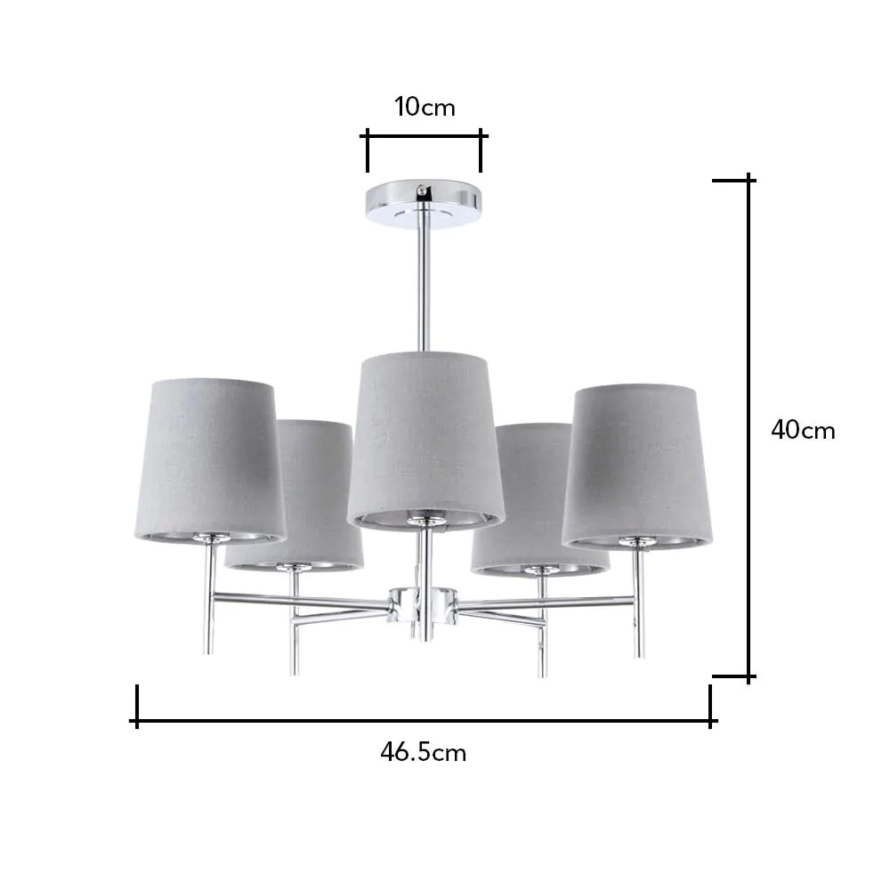 Add a simple yet stylish look to any living room or bedroom with the Mira Semi Flush Ceiling Light with Grey Shades. This flush fitting comes in a sleek chrome finish, offering a high shine appearance and a modern aesthetic to a room. It also features 5 grey shades, looking ideal in both minimalist and monochrome interior design.