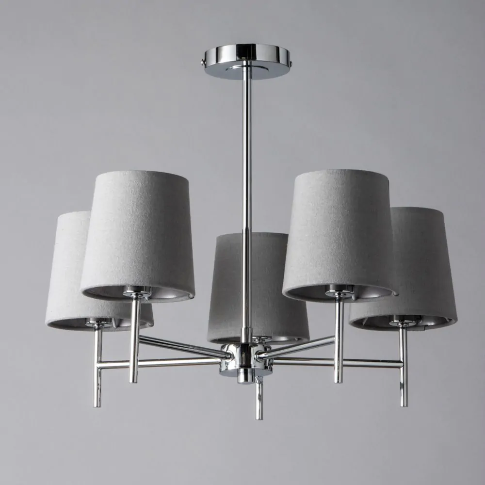 Mira Semi Flush Ceiling Light with Grey Shades, Chrome