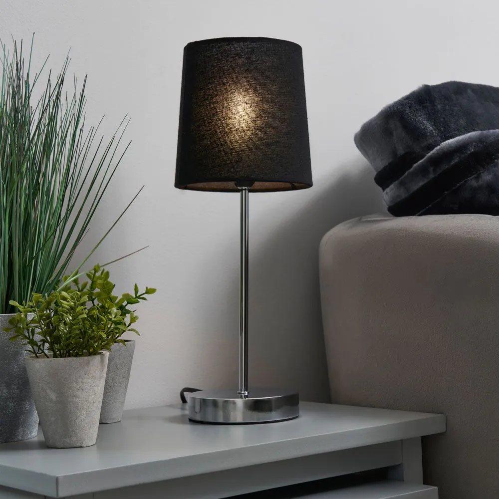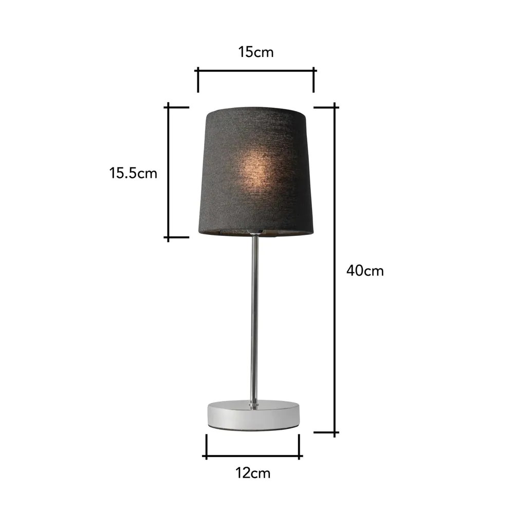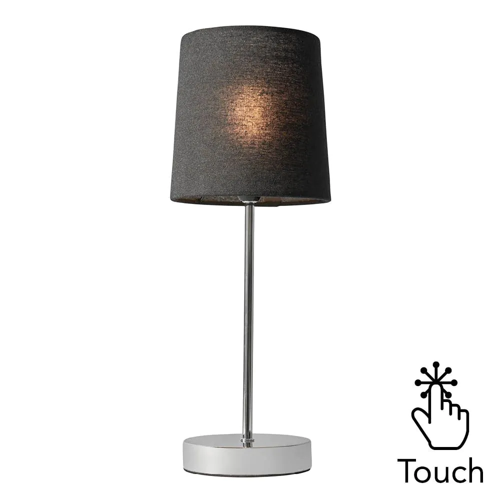 Experience convenience and style with the Mira Touch Table Lamp in Chrome and Black. Its modern design is complemented by the touch functionality, allowing you to easily adjust the lighting to suit your needs. With its sleek chrome finish and bold black shade, this lamp is a contemporary addition to your living space.