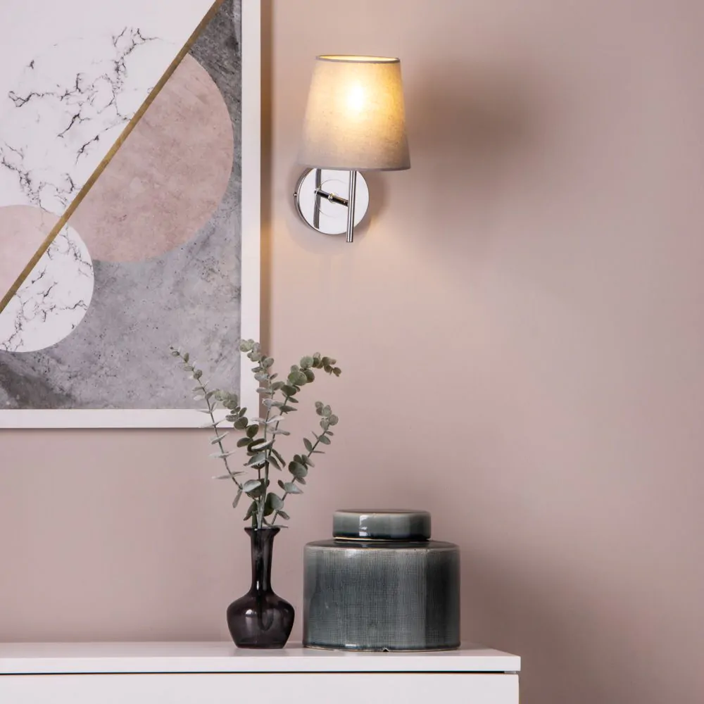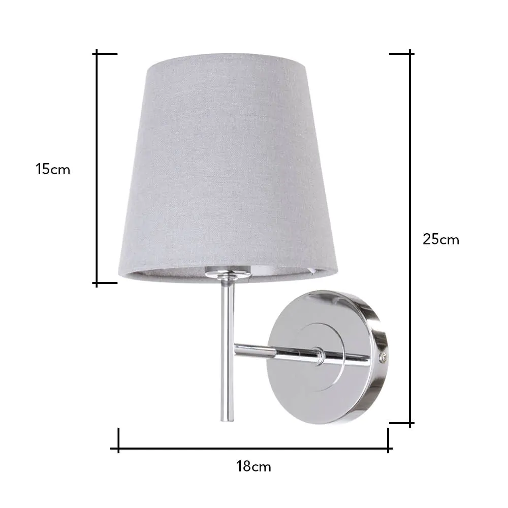 Stunning modern accent lights for your home, the Mira Wall Light with Grey Shade is guaranteed to bring a simple yet stylish aesthetic to your interior décor. This wall lamp comes in a sleek chrome finish and features a minimalist grey light shade. This light looks ideal when styled in pairs either side of a bed, hallway or mirror.