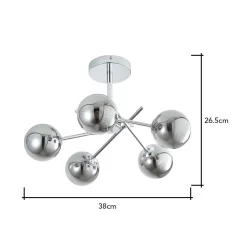 Add an ultra modern lighting style to your décor with the Nera 5 Light Cross Arm Ceiling Light. This ceiling light features a contemporary cross over design and comes in a sleek chrome finish with smoke glass shades, offering a high shine aesthetic. It also is ideal for low ceiling due to the semi flush design and is IP44 rated to ensure water resistance when styled in the bathroom