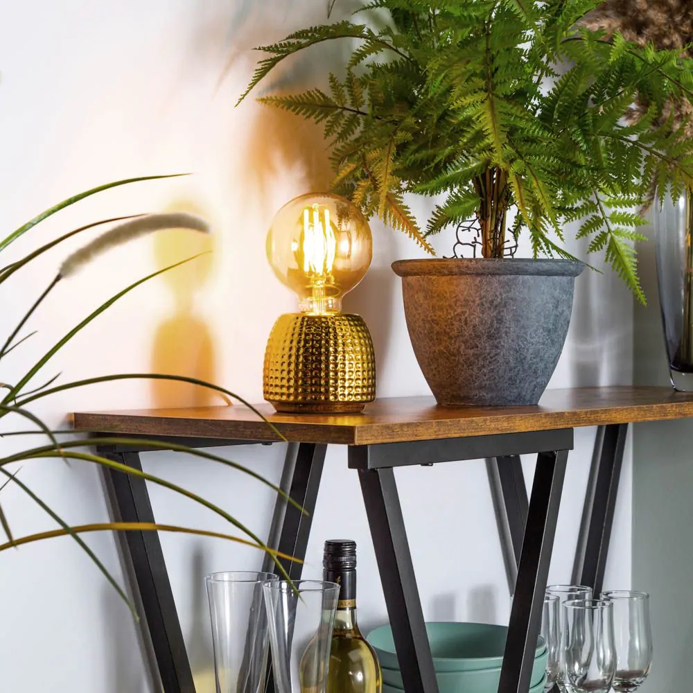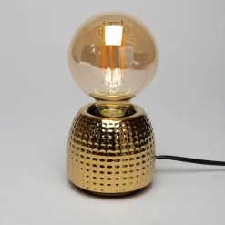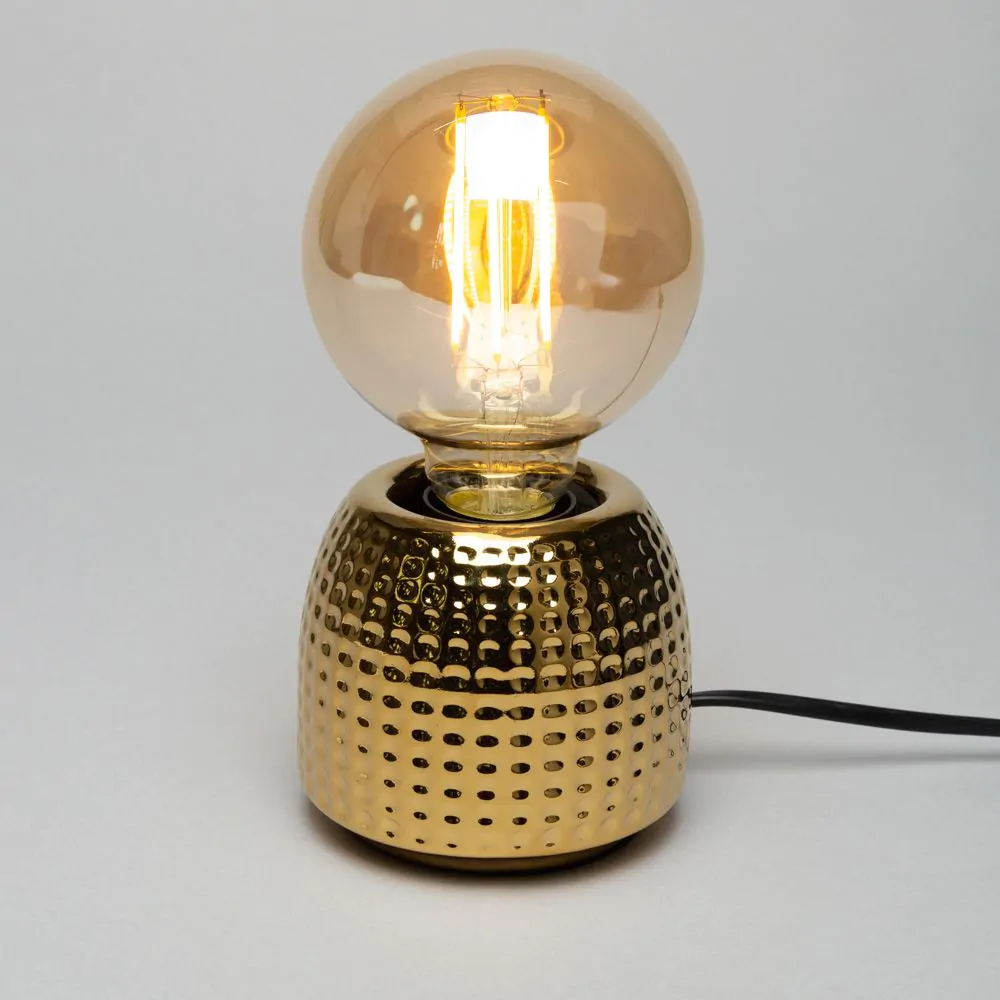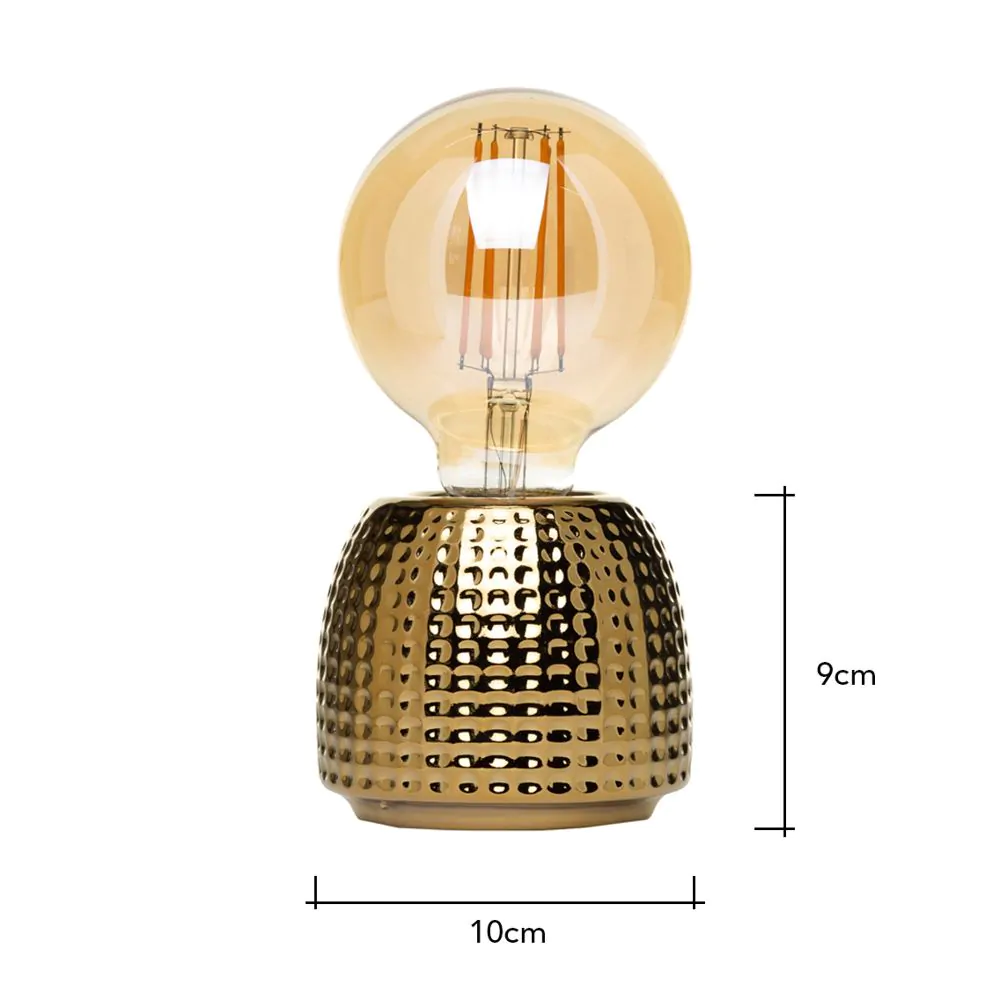 Add a retro, vintage look to your home with the Oak Gold Embossed Base Table Lamp. The stunning embossed detail of the base of this table lamps looks amazing and when paired with the smoked bulb this really does give any home that sense of luxury. The exposed bulb ensures all the light is radiated effectively across your room.