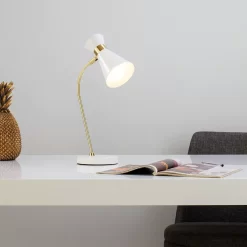 If you’re looking for a stylish, practical light to use in your workspaces, the Olson Arc Task Table Lamps could be the perfect choice, combining a simple white finish with modern brass accents and an hourglass shade that directs the light towards the areas that need it for a more focused and useful style of light. The shade can be adjusted to suit any purpose and sits atop a round base, supported by a sleek curved stem for a simple contemporary look. Place on any desk or side table to give purposeful task light to the surrounding space.