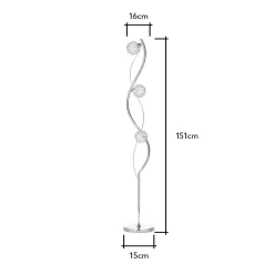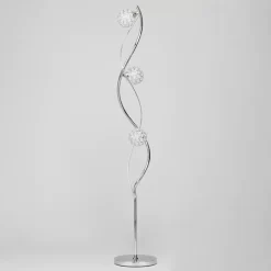 The new member of the Orianna set has finally arrived, and it’s a stunningly elegant floor lamp. The chrome finished arms curl up from the base and create a spiralling masterpiece. 3 ball-shaped shades stand at the ends of these arms, each with a crystal effect detailing that illuminates a crystal light effect onto the walls, making it perfect for mood lighting in a bedroom or living room .