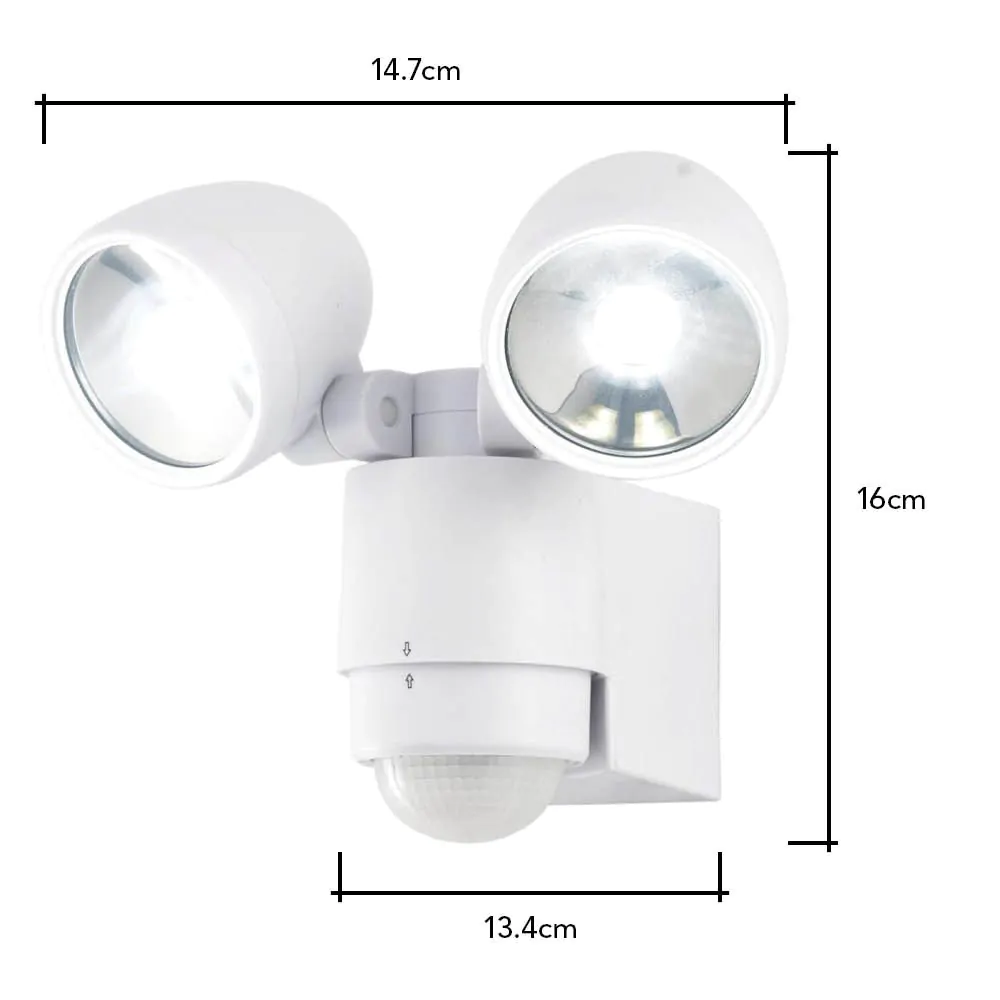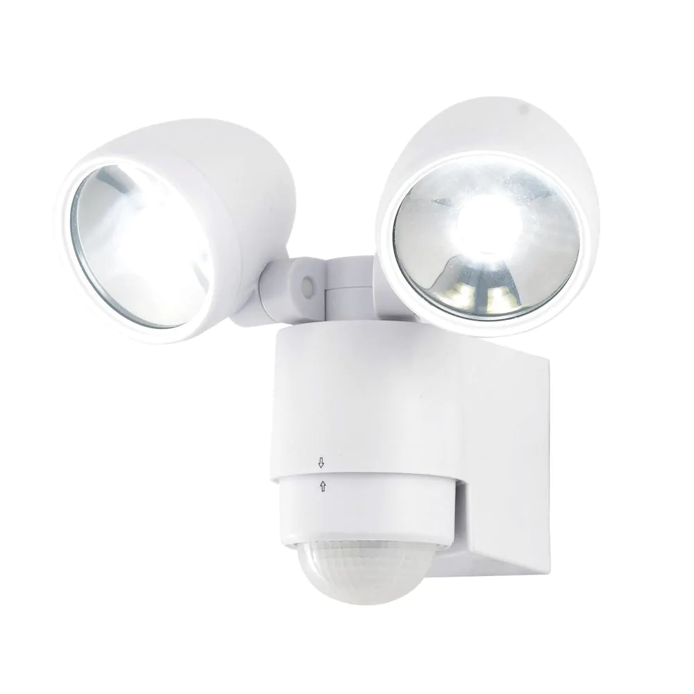 Incorporate a task lighting addition to your home’s outdoor lighting arrangements with the Orion Twin LED Security Spotlight with PIR Sensor. With a sleek, white finish, this practical wall light enhances the sense of safety for your home, with 2 spotlight heads that fill your surroundings with a practical beam of light. With a PIR sensor, this motion-activated fitting emphasises the security for your home and acts as a great way to keep your home safe and secure.