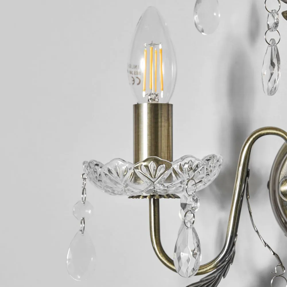Add a touch of sophistication to your walls with the Paisley Wall Light in Antique Brass. The rich brass finish exudes timeless elegance, while the design complements both traditional and modern interiors. Create a warm and inviting atmosphere in any room with this exquisite wall light, featuring gorgeous crystal effect droplets which sparkle as they reflect the light.
