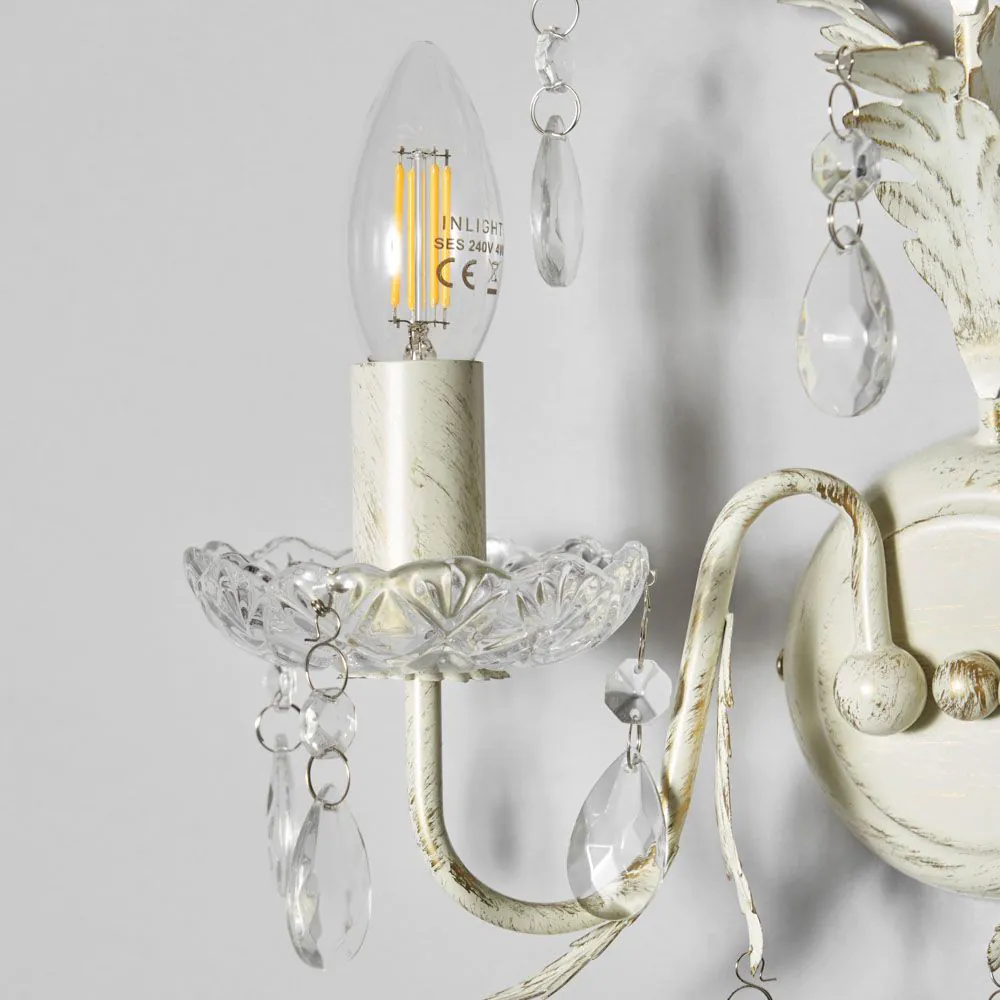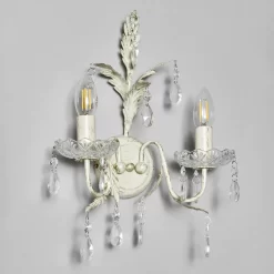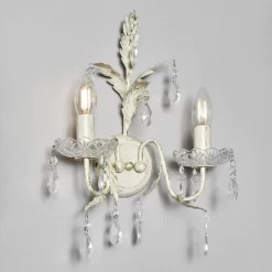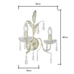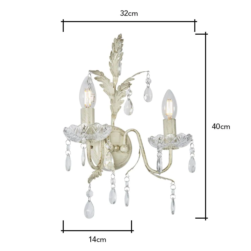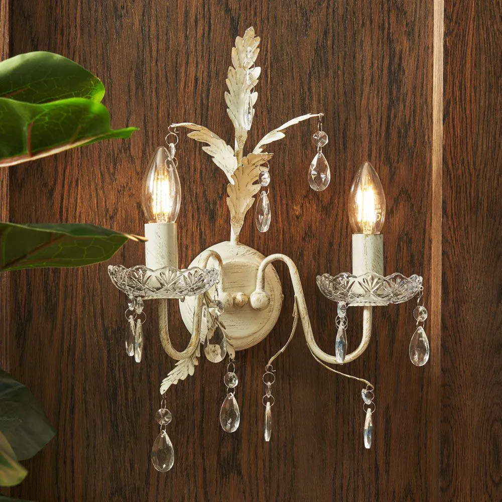Illuminate your space with the Paisley Wall Light in Cream. This elegant fixture features a soft cream hue that blends seamlessly with various décor styles. Its classic design with crystal effect droplets and warm glow creates a cosy ambience, making it a perfect addition to bedrooms, living rooms, or hallways.