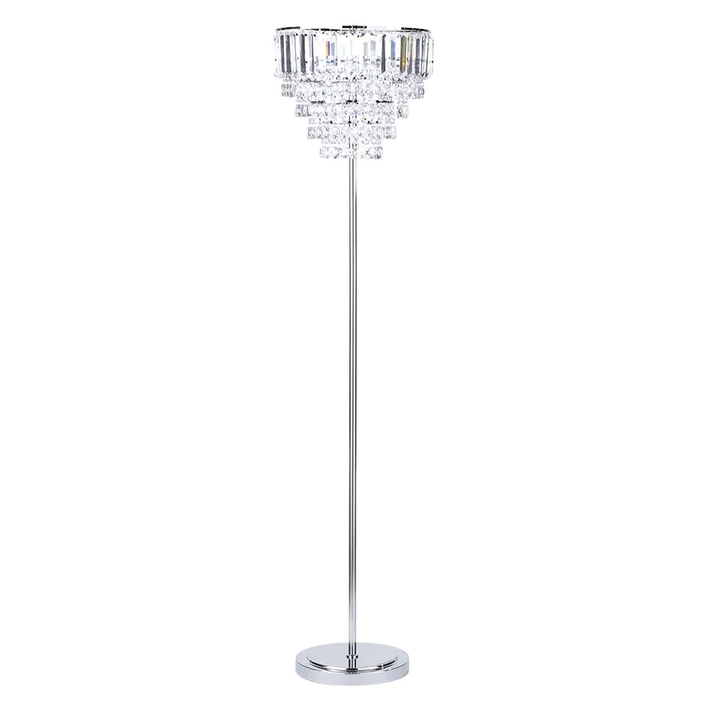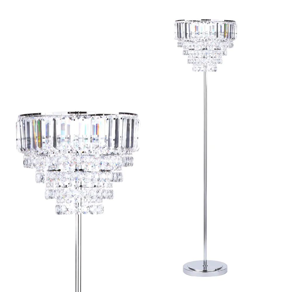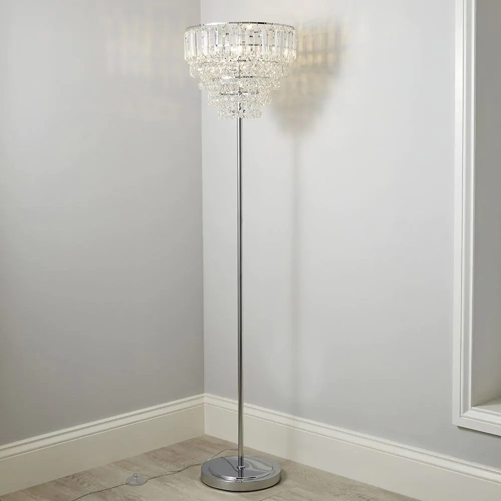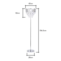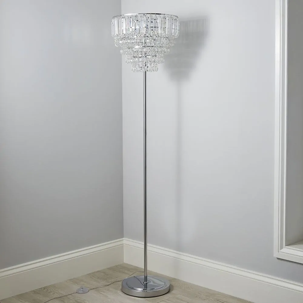 A perfect finishing touch to complete any stylish décor, the Paladina Floor Lamp has a towering stem making it the ideal light to place next to an armchair, emitting great lighting for relaxing or studying. The shining crystal effect droplets give the lamp a quality finish whilst the sleek chrome structure ensures functionality. The glamorous features of this lamp will be sure to elevate any room to a five-star status and leave your guests envious of your beautiful lighting.