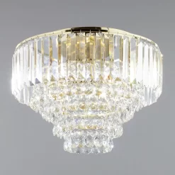 The Paladina Flush Ceiling Light is a stunning addition to your interior lighting arrangements, with a beautiful new brass finish that adds a soft, elegant vibe to any room. The assortment of elegant droplets gives this decorative ceiling fitting a luxurious, glamorous look, shining, and sparkling in the warm light within. This flush fitting’s reduced drop height makes it an ideal piece for any bedroom or dining room, giving maximum style and space.