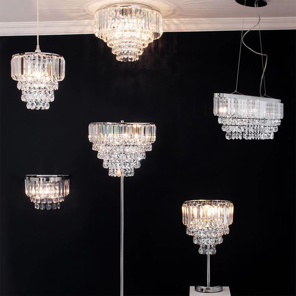 - Chrome finish provides a modern look as the clear, crystal effect droplets create an elegant flair;