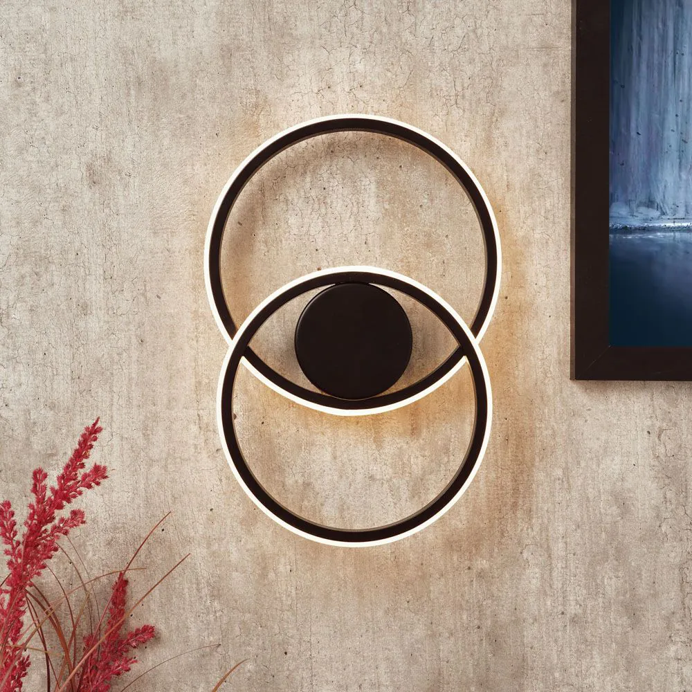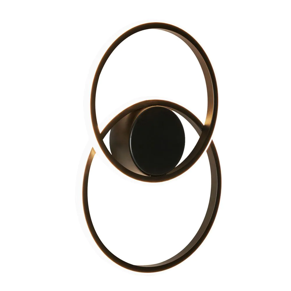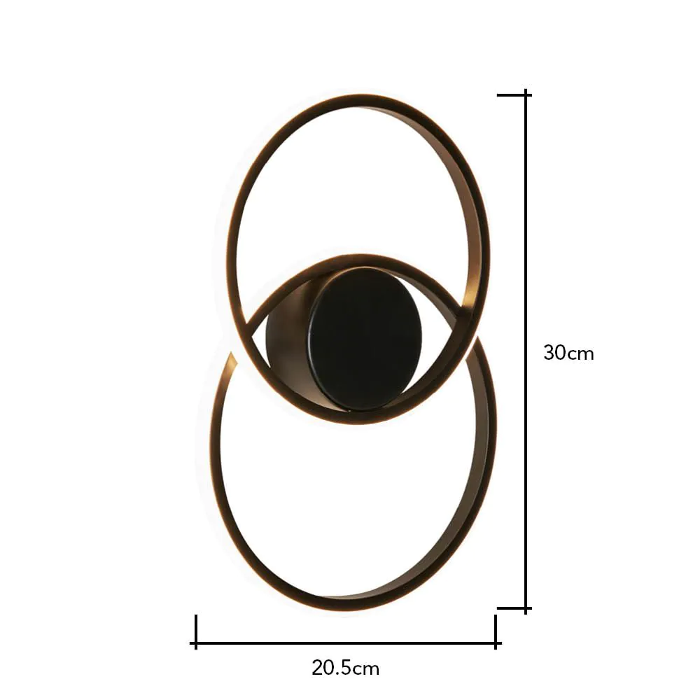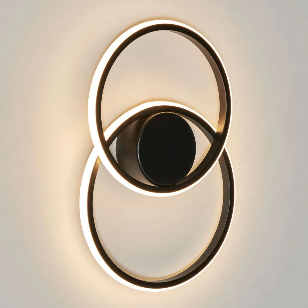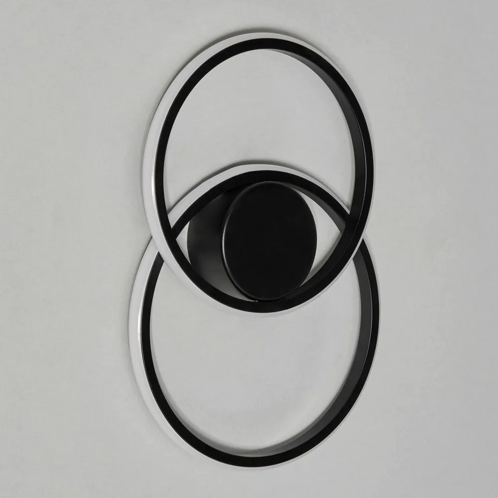 Elevate your wall lighting with the Pei 2 Ring Wall Light in Black. This wall light enhances the aesthetics and ambience of your space, making it an ideal addition to various interiors. While the bold black finish complements the LED-integrated two-ring design, offering a modern and minimalist vibe to any room.