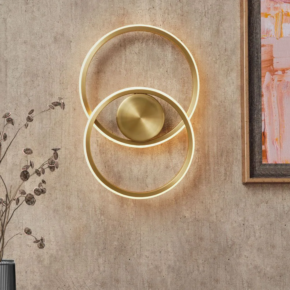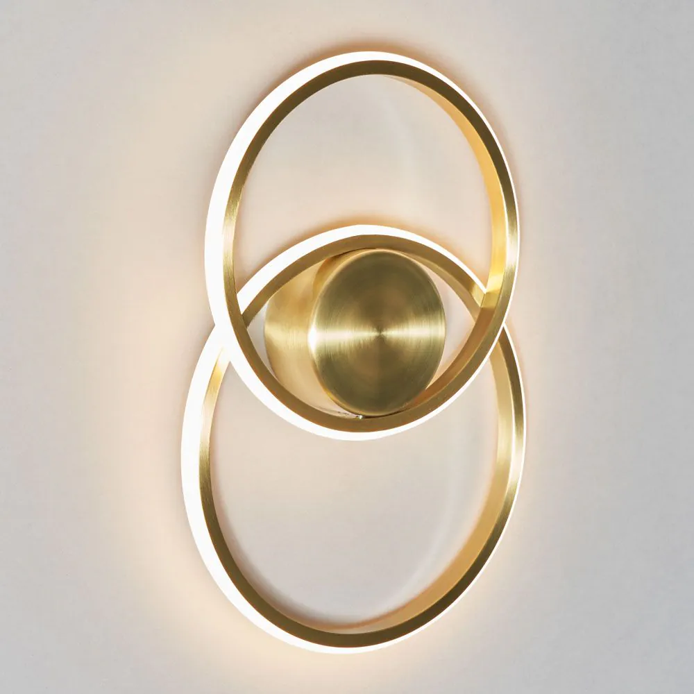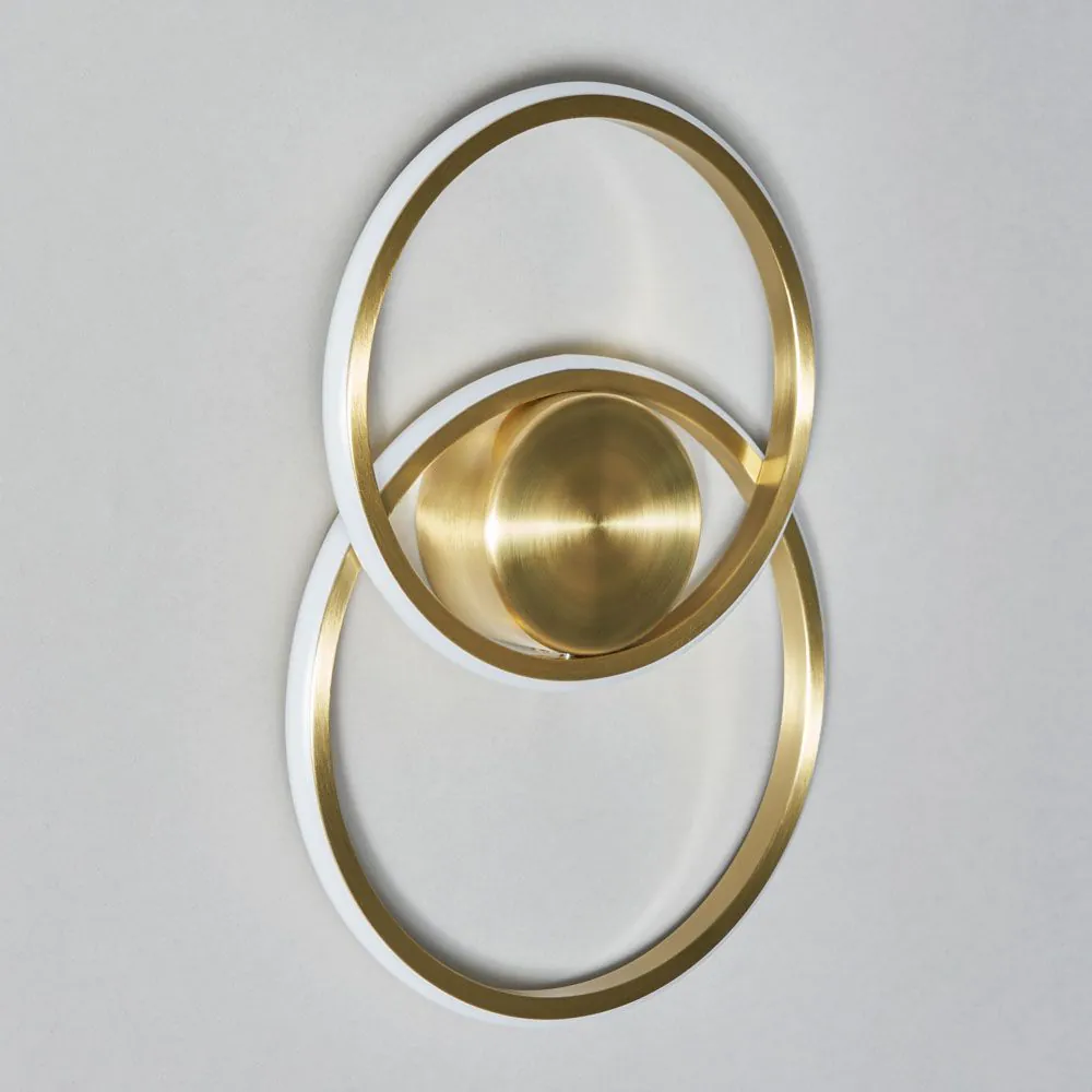 Add a touch of elegance to your walls with the Pei 2 Ring Wall Light in Brass. The LED-integrated two-ring design creates an eye-catching focal point, while the brass finish exudes timeless opulent beauty. This wall light enhances both the aesthetics and the lighting of your interior, ideal for bedrooms, hallways, or living rooms.