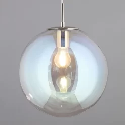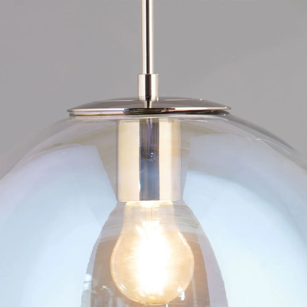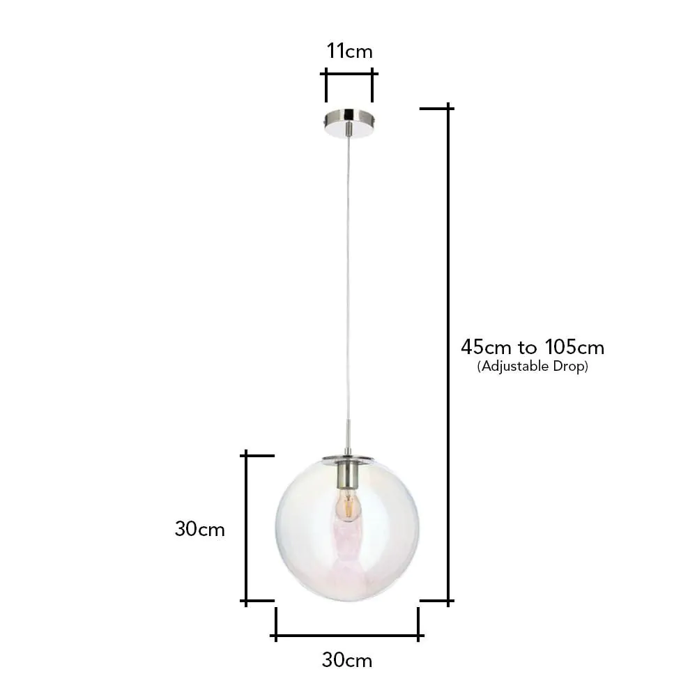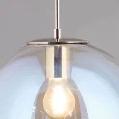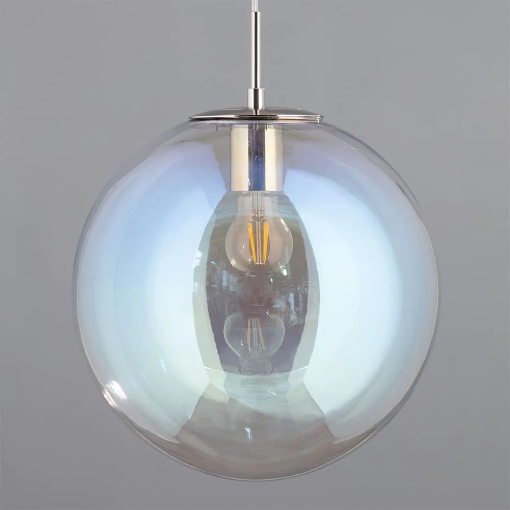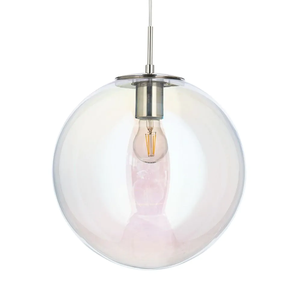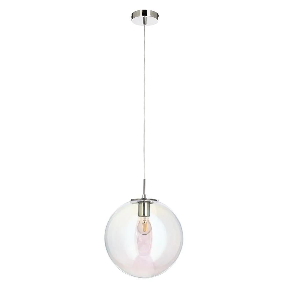 The Petro Iridescent Pendant brings geometrical minimalism into your home, creating a wonderfully modern statement piece for your ceilings. The spherical light maintains an understated appearance and makes a statement with its immaculate sense of design. The nickel accents give the pendant an additional vintage look that works well in both vintage homes, and perhaps a modern décor in need of colour.